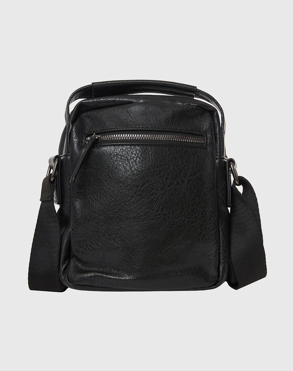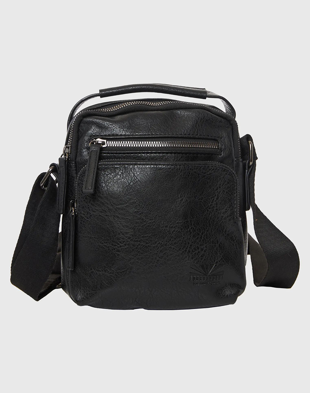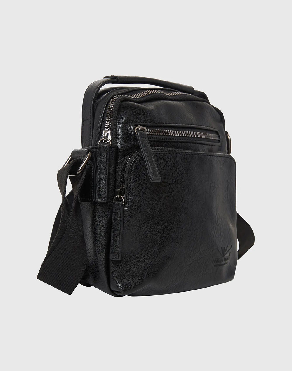 Men's shoulder bag, solid color, with logo on the front, adjustable shoulder strap, external pockets and zipper closure. Dimensions: 17 x 6.5 cm. (Composition: 100% Polyurethane Fiber)