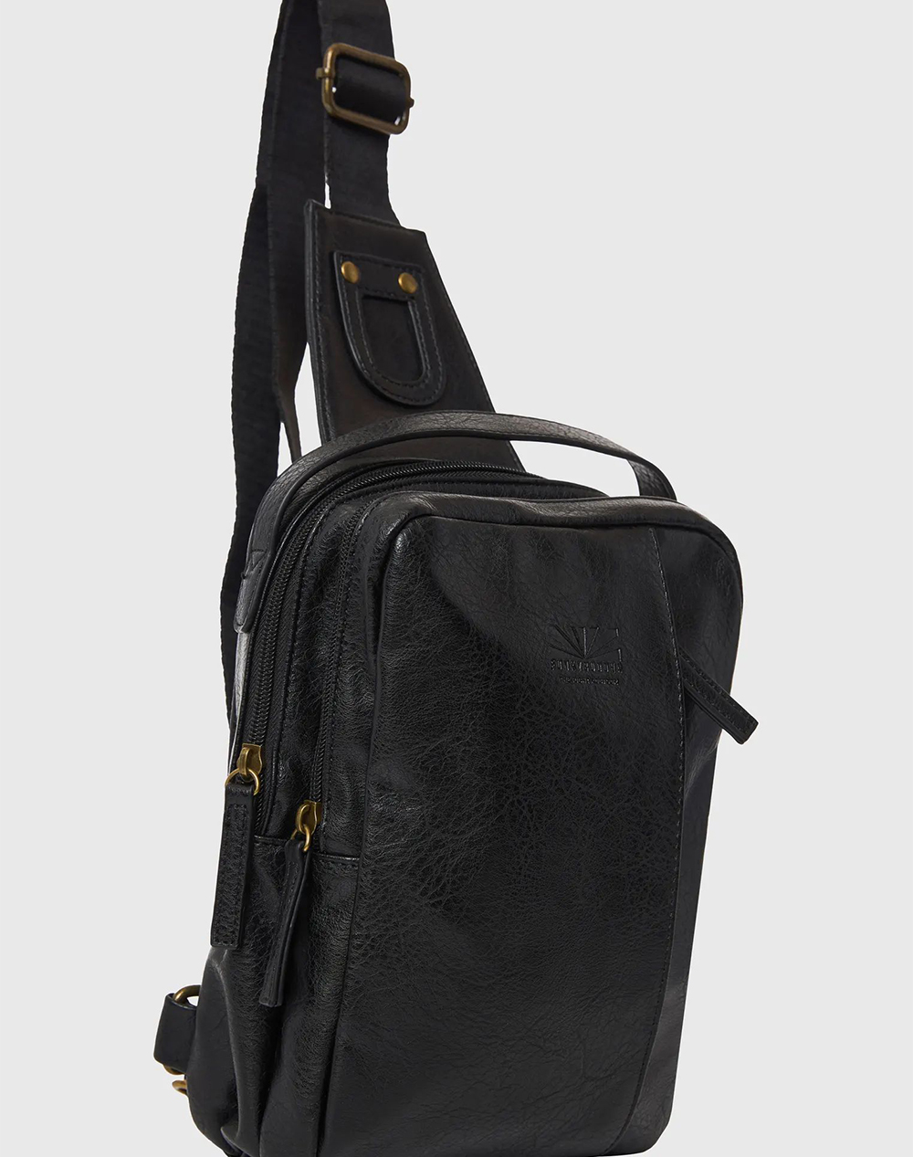 Men's shoulder bag, solid color, with logo on the front, adjustable shoulder strap, external pockets and zipper closure. Dimensions: 18 x 9.5 cm. (Composition: 100% Polyurethane Fiber)