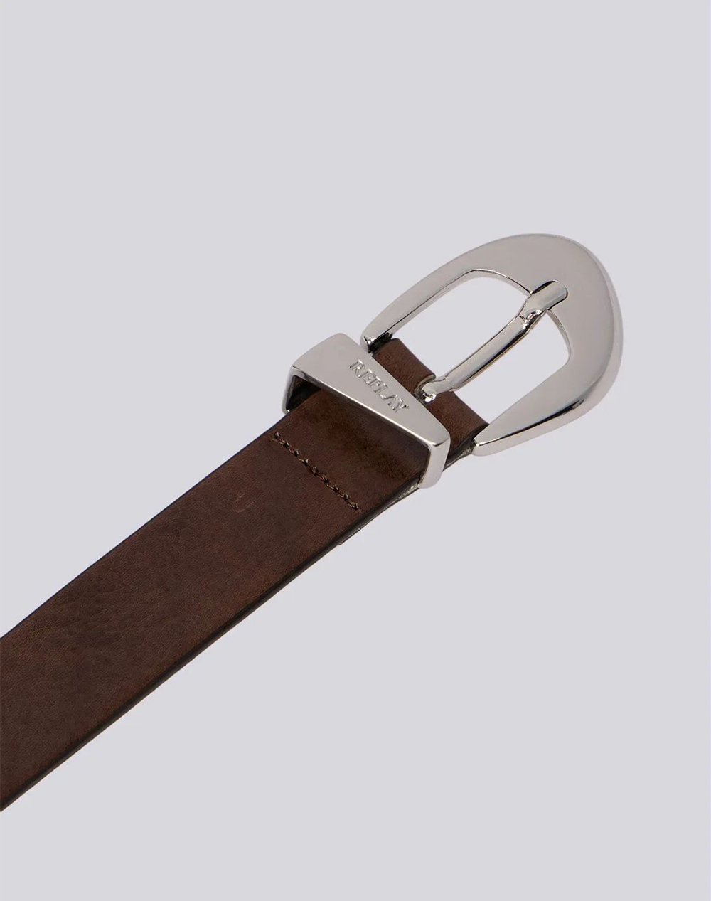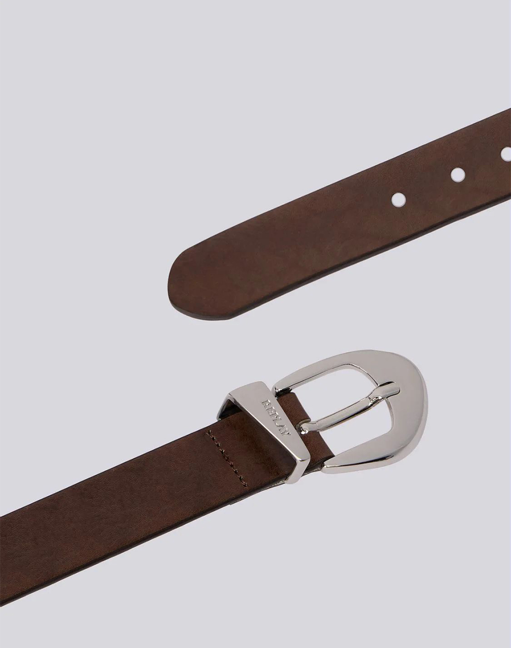 Men's belt, with buckle and belt loop with asymmetrical design and engraved Replay logo. (Composition: 100% Cowhide)