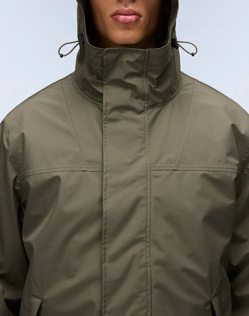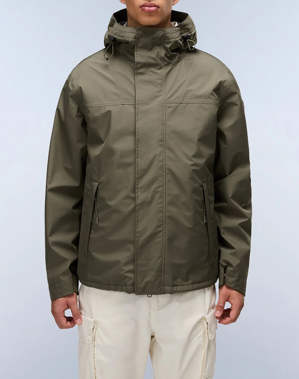 Men's jacket, waterproof, windproof, regular fit, features an internal removable vest, adjustable hood and front closure with zipper and buttons. (Composition: 100% recycled polyester (PET))