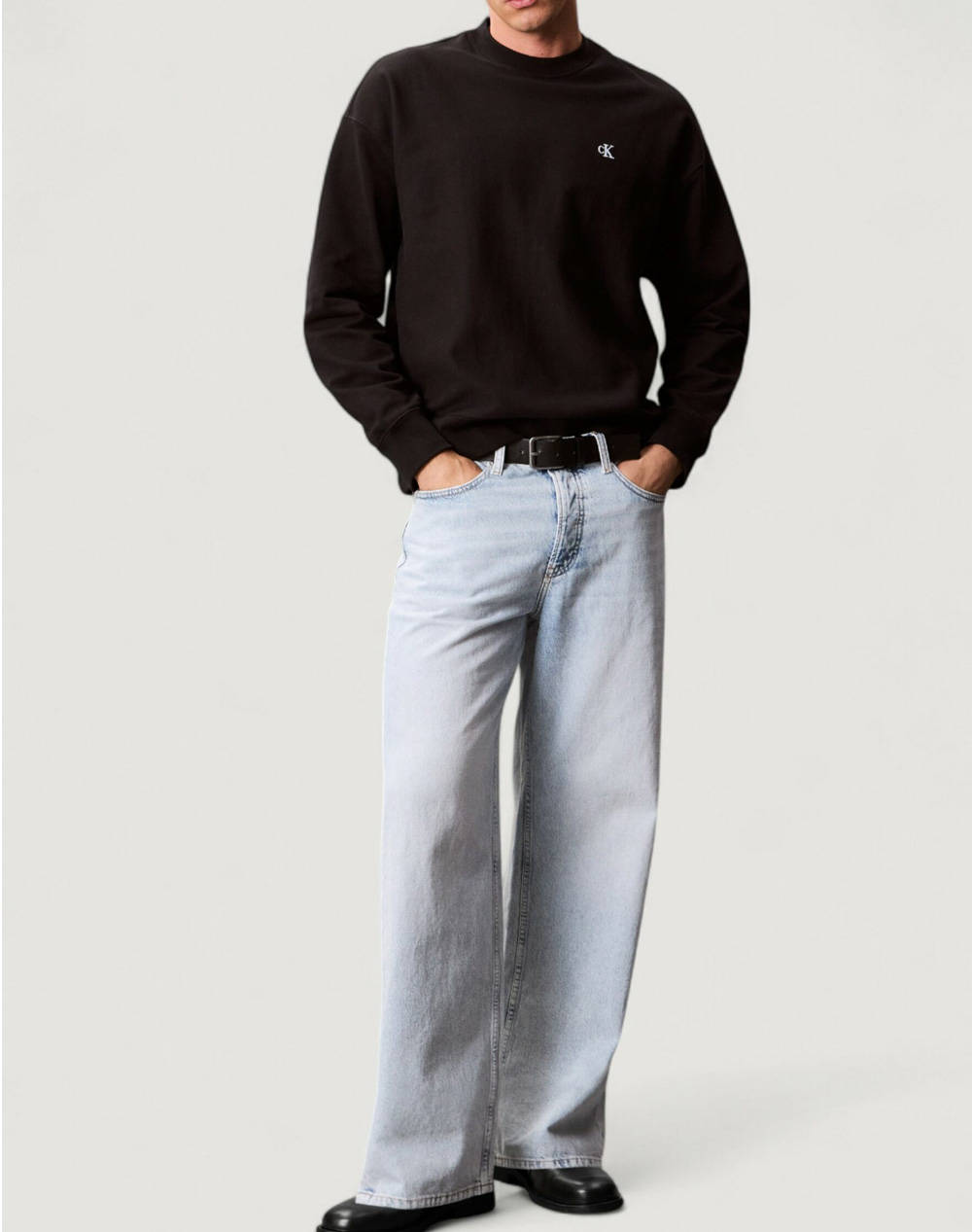 Men's sweatshirt, regular fit, solid color, long sleeve, with round neckline and embroidered logo on the chest. (Composition: 86% Cotton, 14% Polyester)