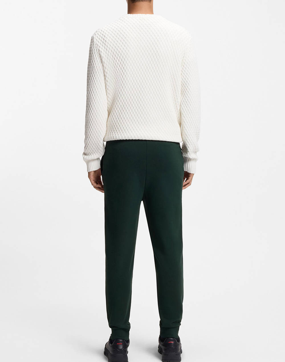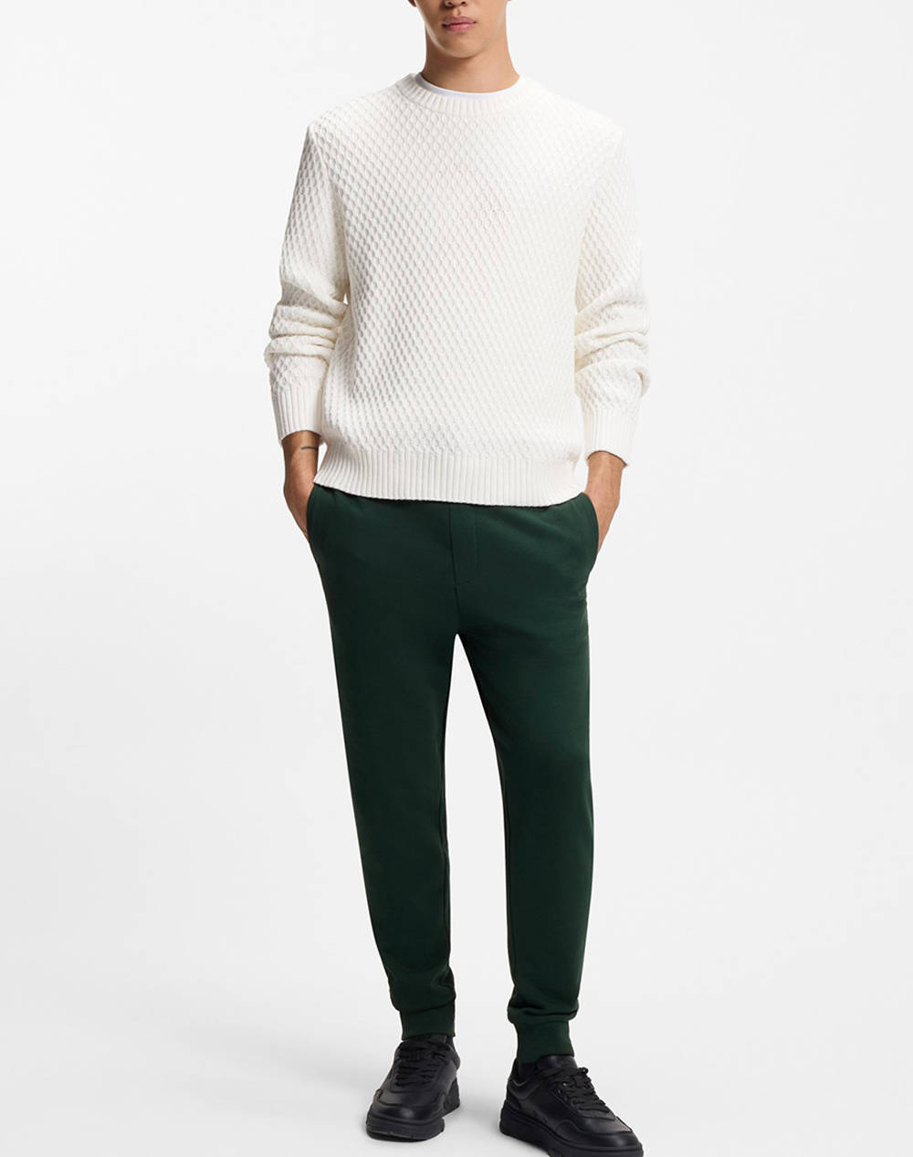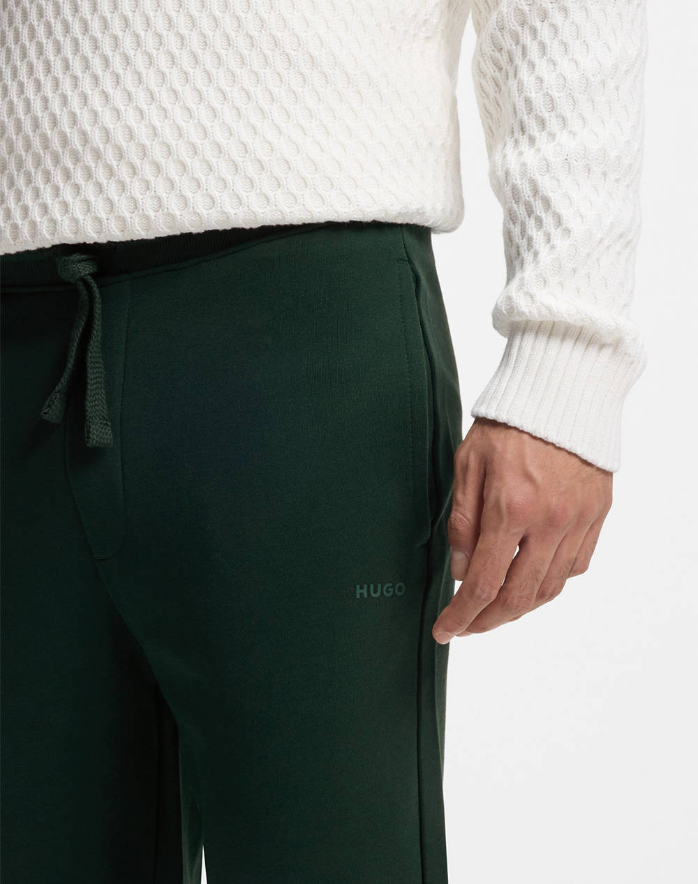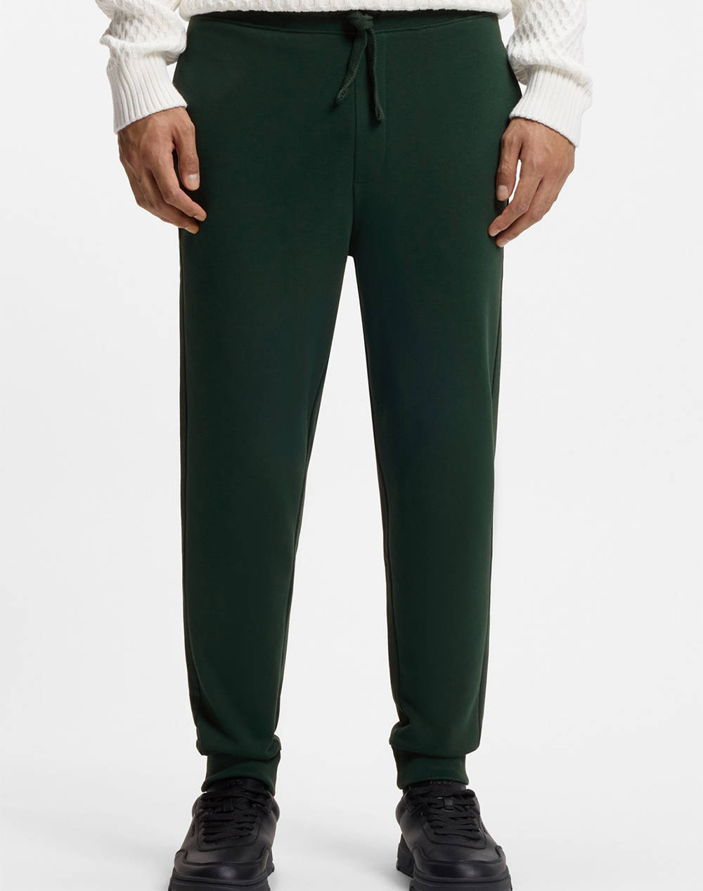 Men's track pants, solid color, with side pockets, logo on the leg and elastic waist with drawstring. (Composition: 100% Cotton)