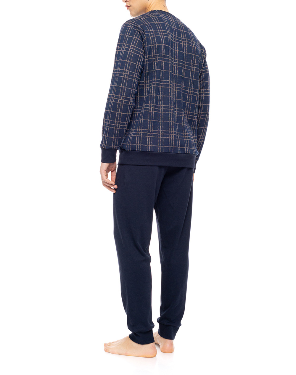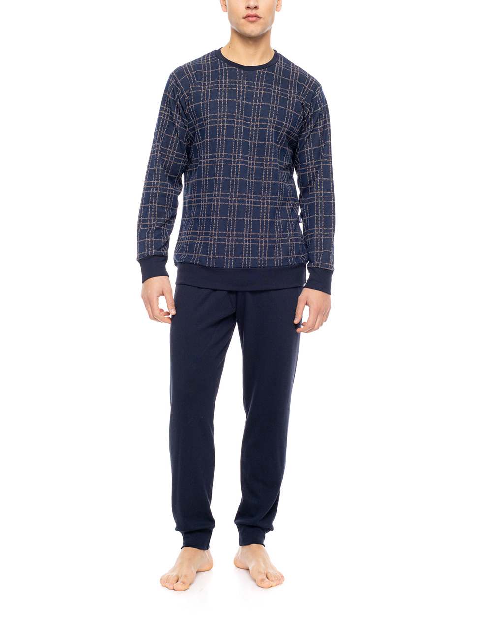 Ανδρικό σετ πυτζάμες, με μακρυμάνικη μπλούζα, με καρό μοτίβο και στρογγυλή λαιμόκοψη και μονόχρωμο παντελόνι. (Σύνθεση: 100% Βαμβάκι)
