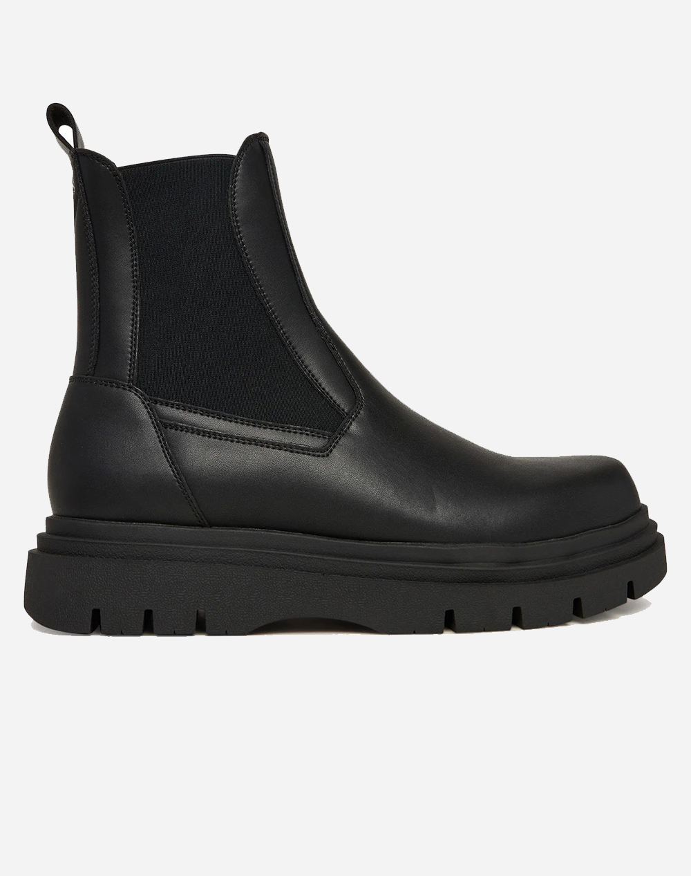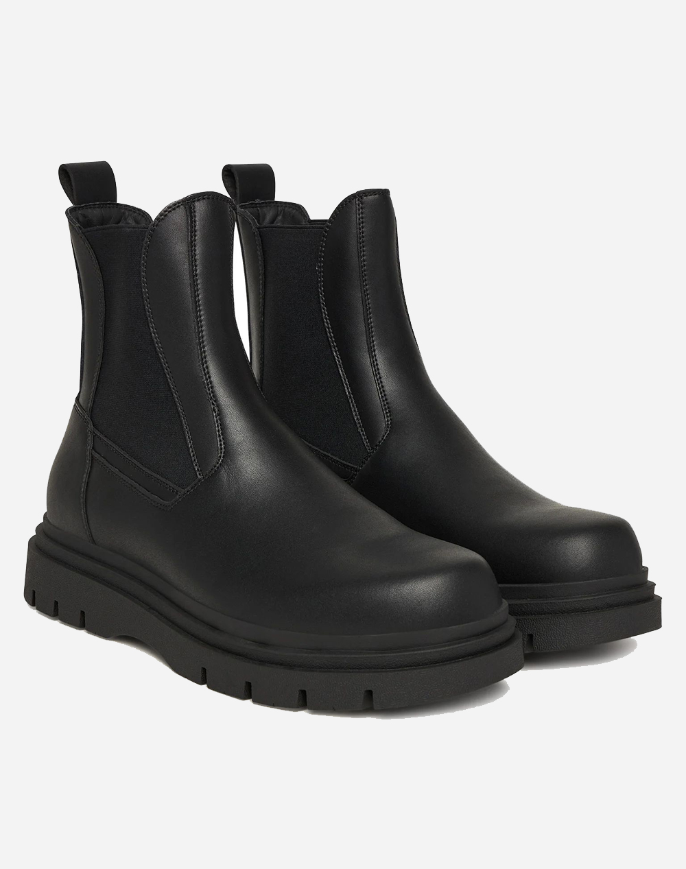 Men's ankle boots, with a round toe, elastic on the side and logo on the back. Sole height: 4.5cm. (Composition: 80% Genuine leather, 20% Elastane)