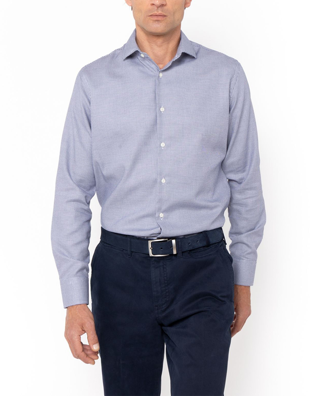 Men's shirt, regular fit, long sleeve, with micro pattern, semi rex collar and button closure. (Composition: 100% Cotton)
