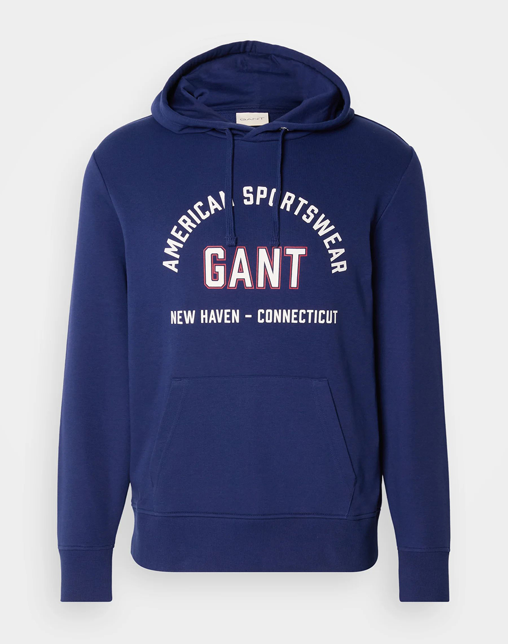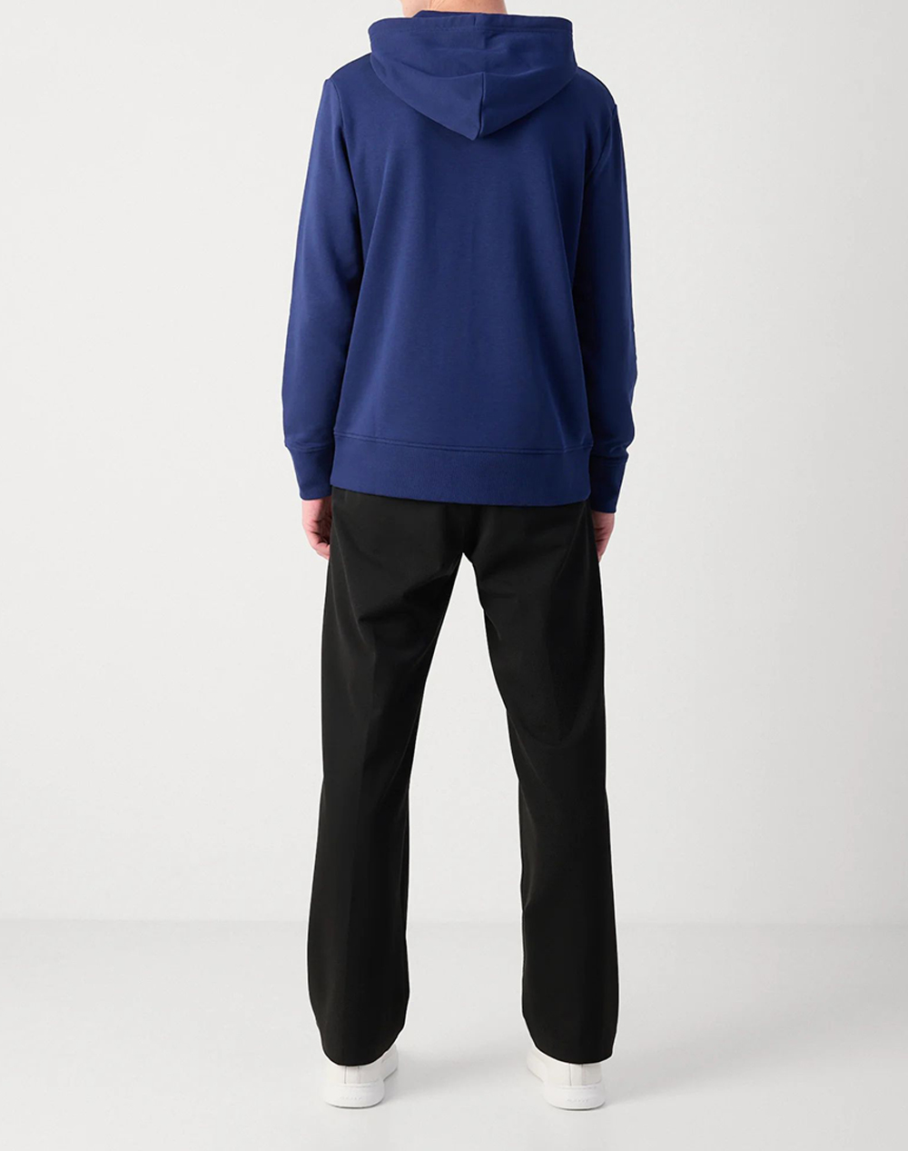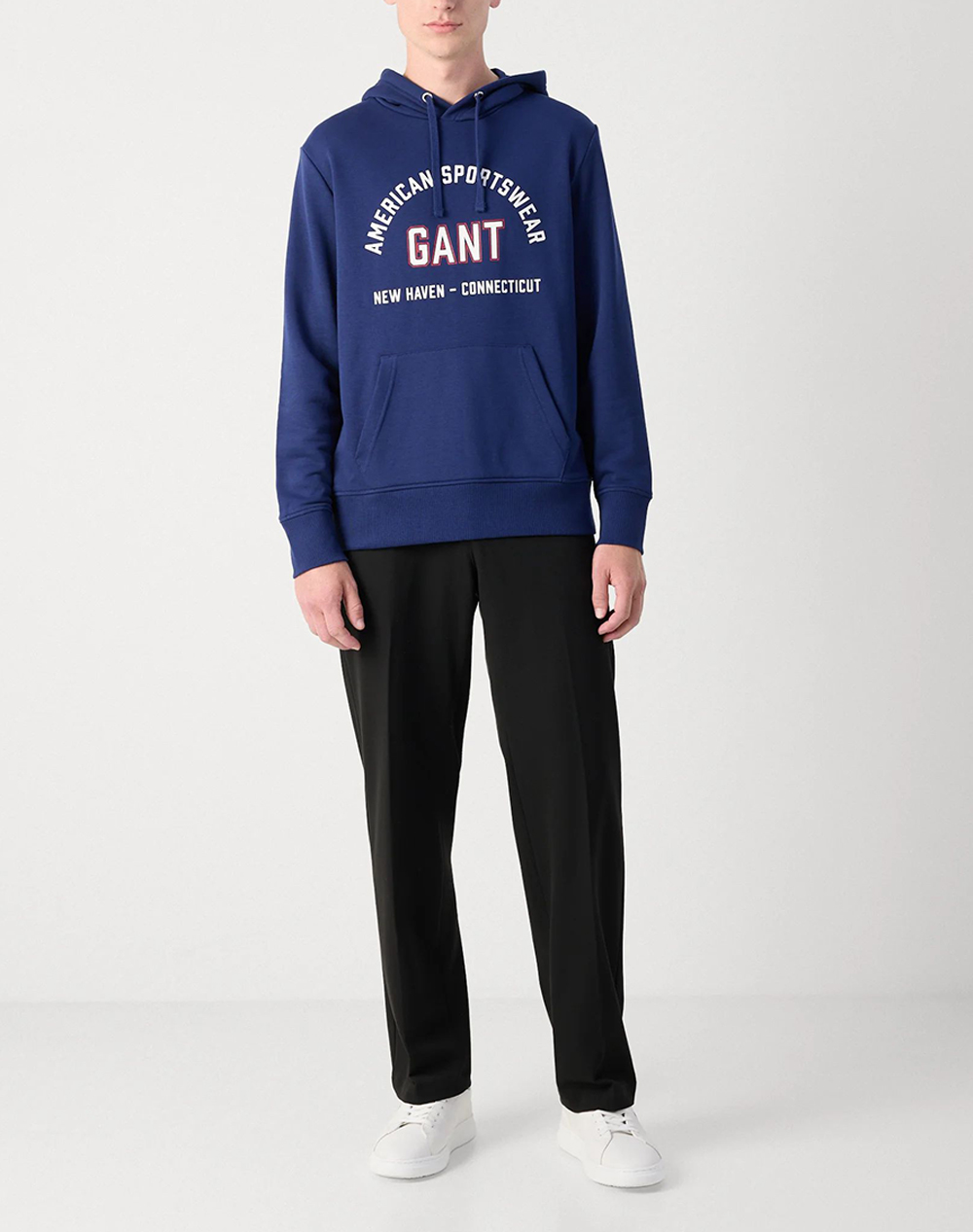 Men's sweatshirt, regular fit, solid color, long sleeves, with adjustable hood, kangaroo pocket and logo on the front. (Composition: Cotton fabric)