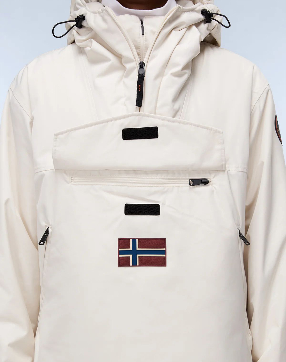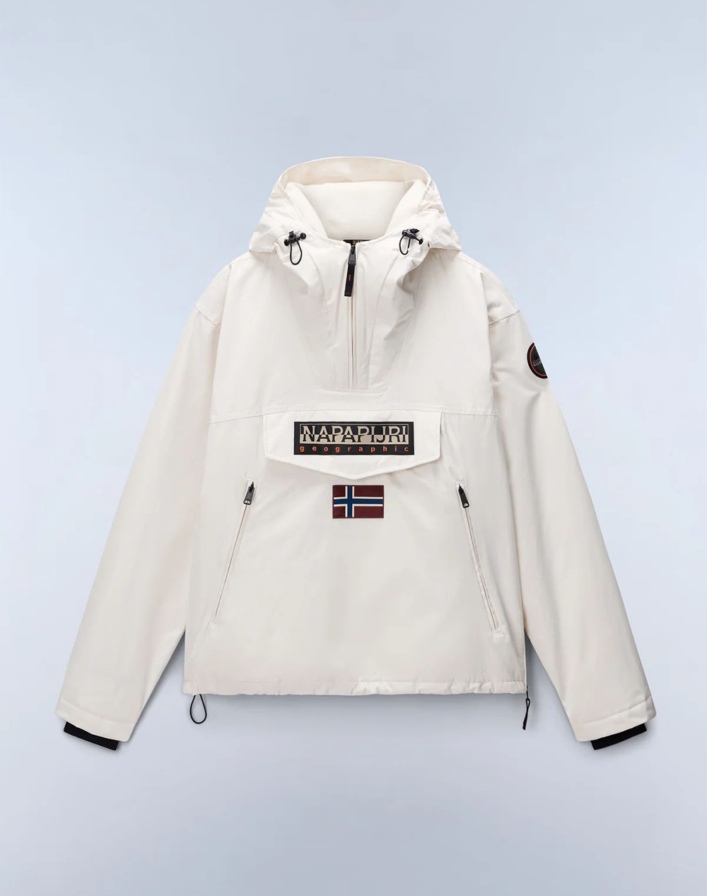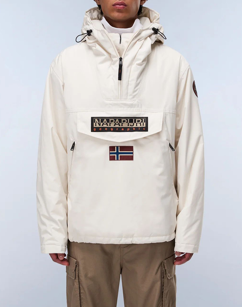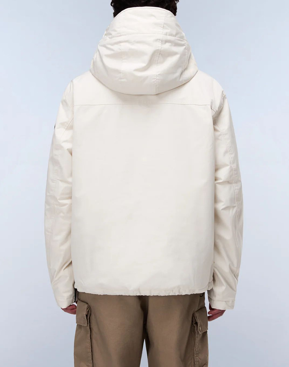Men's anorak, waterproof, in an oversized line, with adjustable hood and zipper closure on the sides. (Composition: 100% Recycled Polyester)