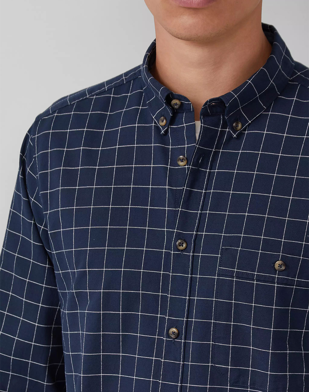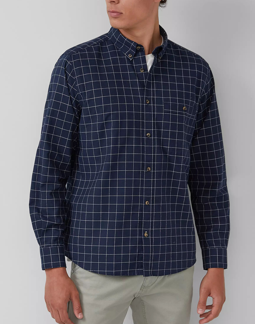 Men's shirt, regular fit, long sleeves, with plaid pattern, button-down collar, chest pocket and button closure. (Composition: 100% Cotton)
