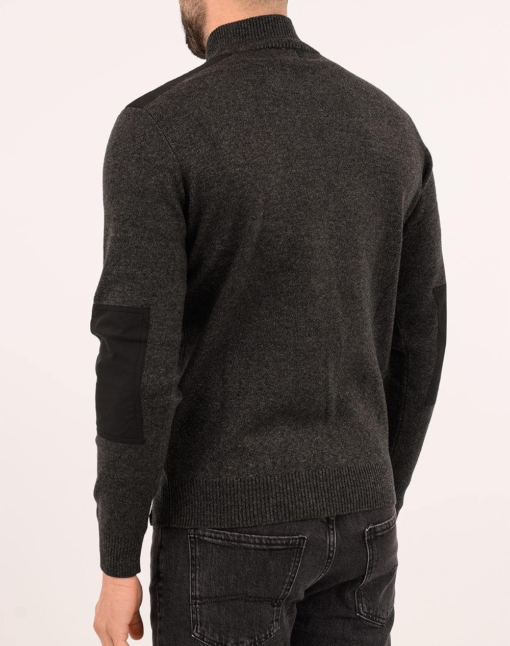 Men's knitted top, regular fit, long sleeve, with high neck and half zip. (Composition: 45% Cotton, 55% Acrylic)