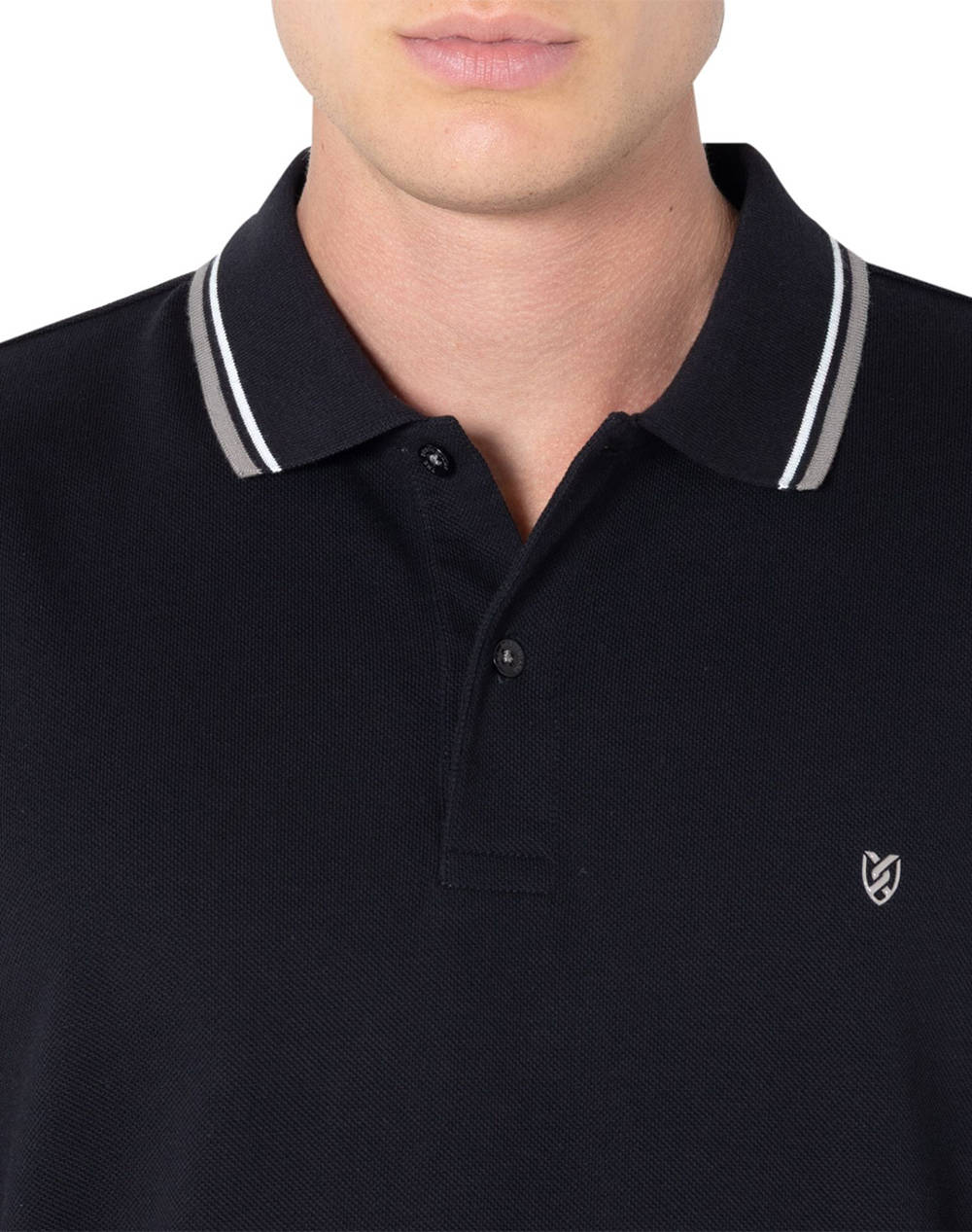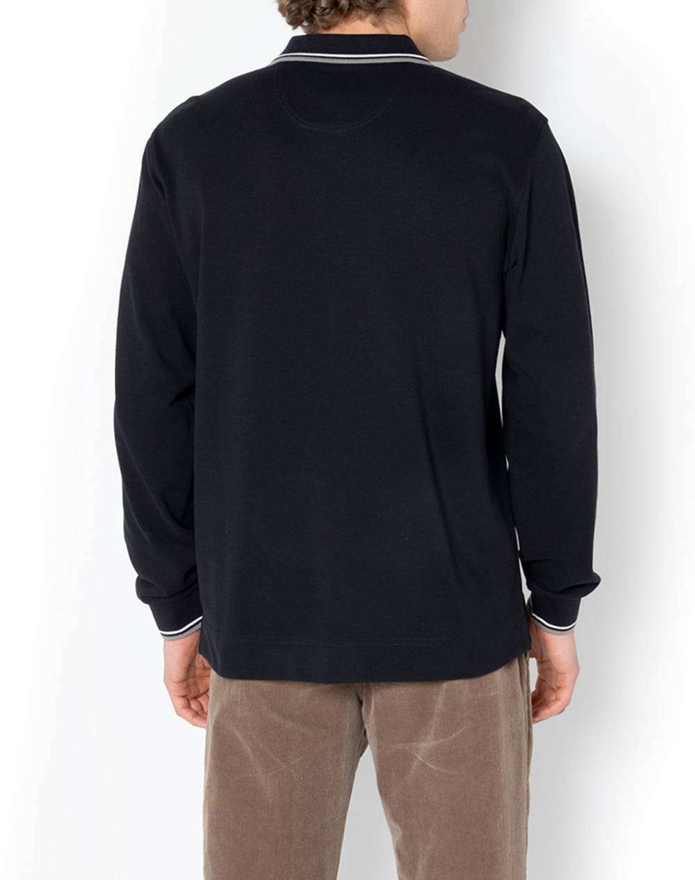 Men's polo shirt, regular fit, solid color, long sleeves, with pique weave, contrasting stripe on the collar and cuffs and embroidered logo on the chest. (Composition: 100% Cotton)