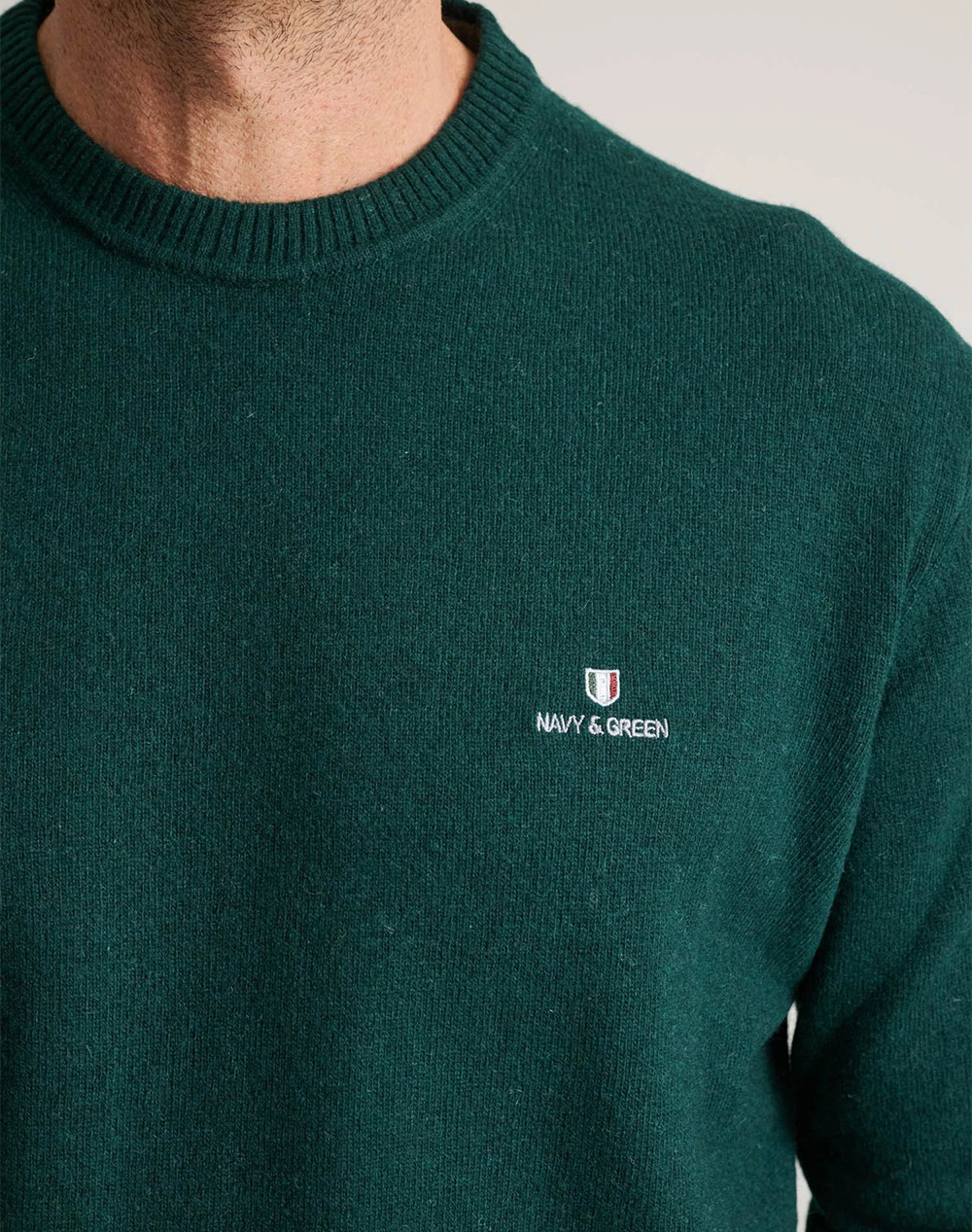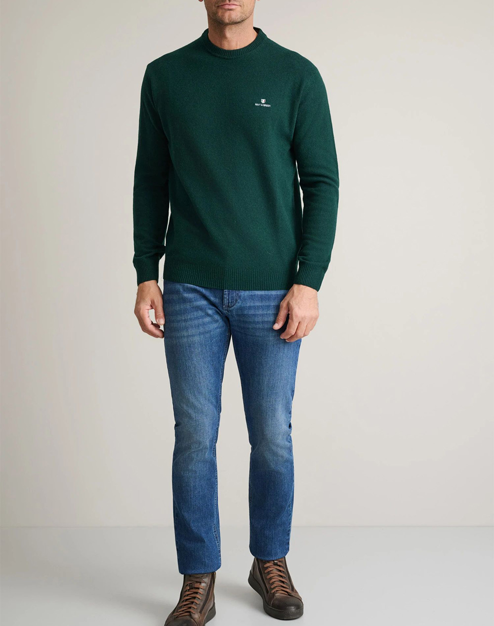 Men's knitted top, regular fit, long sleeve, with Silicon finish and embroidered logo on the chest. (Composition: 80% Wool, 20% Polyamide)