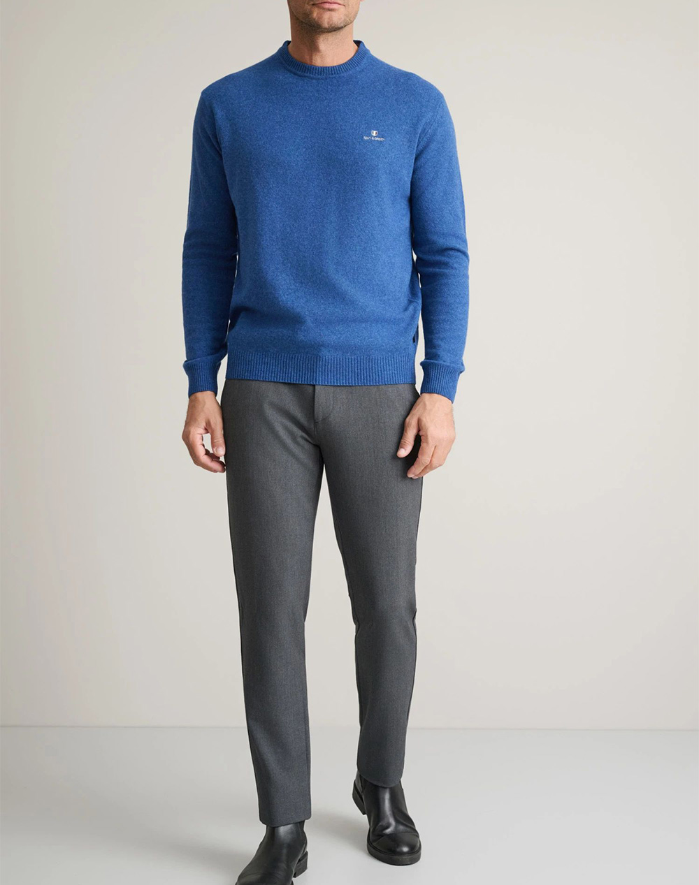 Men's knitted top, regular fit, long sleeve, with Silicon finish and embroidered logo on the chest. (Composition: 80% Wool, 20% Polyamide)