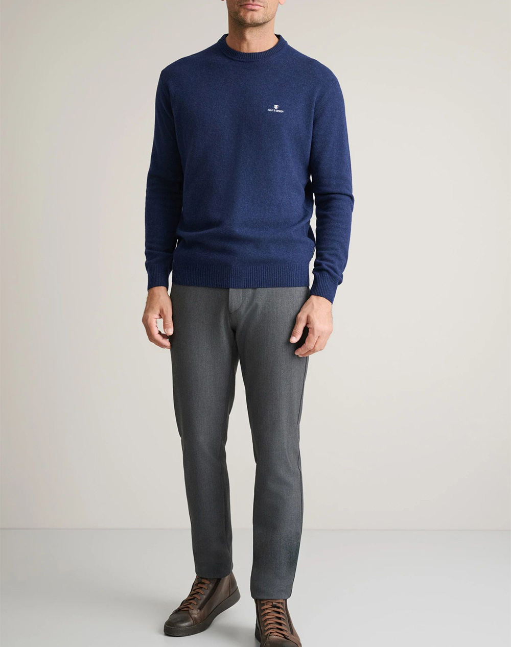 Men's knitted top, regular fit, long sleeve, with Silicon finish and embroidered logo on the chest. (Composition: 80% Wool, 20% Polyamide)