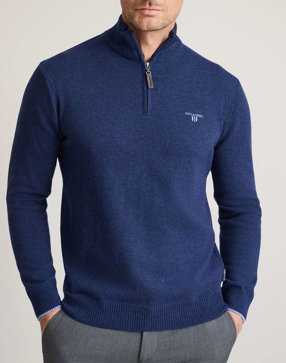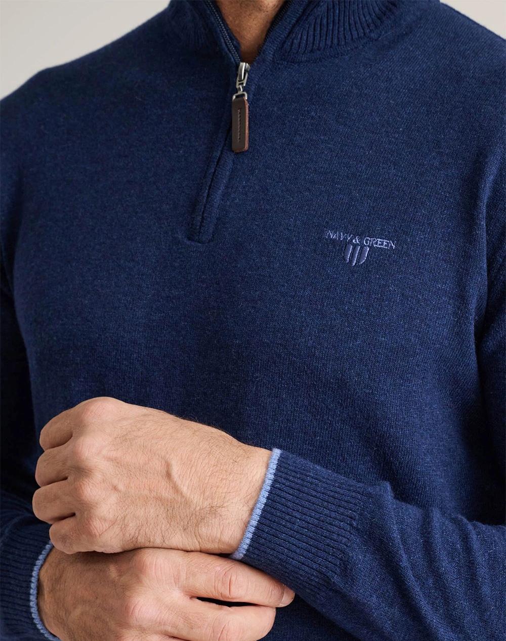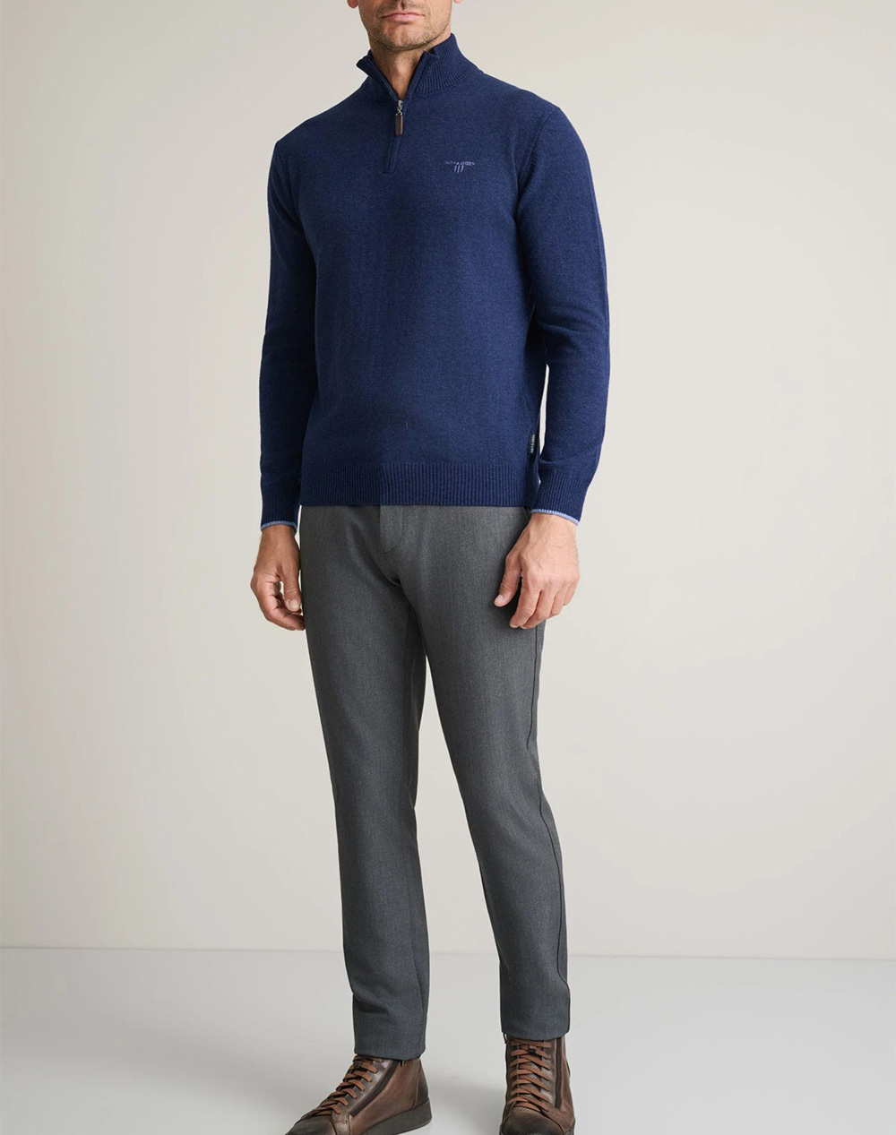 Men's knitted top, regular fit, long sleeves, with Silicon finish, stand-up collar with half zip and embroidered logo on the chest. (Composition: 80% Wool, 20% Polyamide)