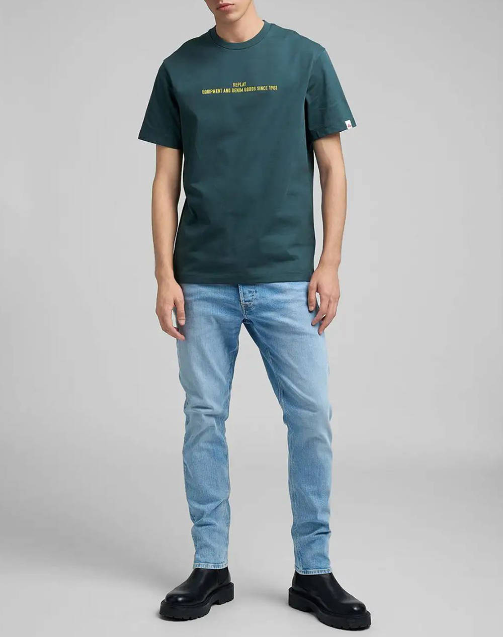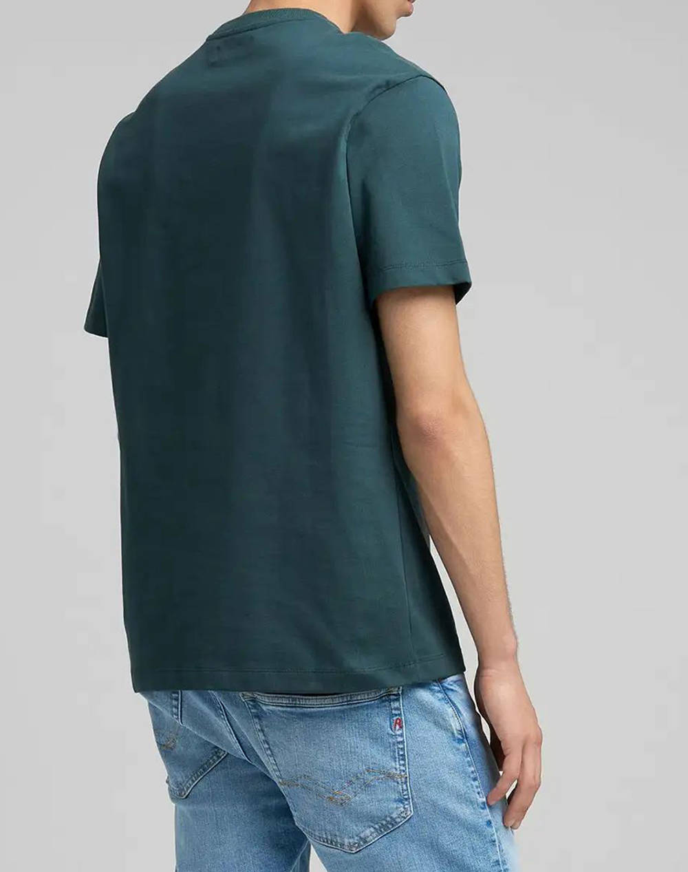 Ανδρική μπλούζα, σε άνετη γραμμή, μονόχρωμη, κοντομάνικη, με στάμπα στο στήθος και στρογγυλή λαιμόκοψη.(Σύνθεση: 100% Βαμβάκι)