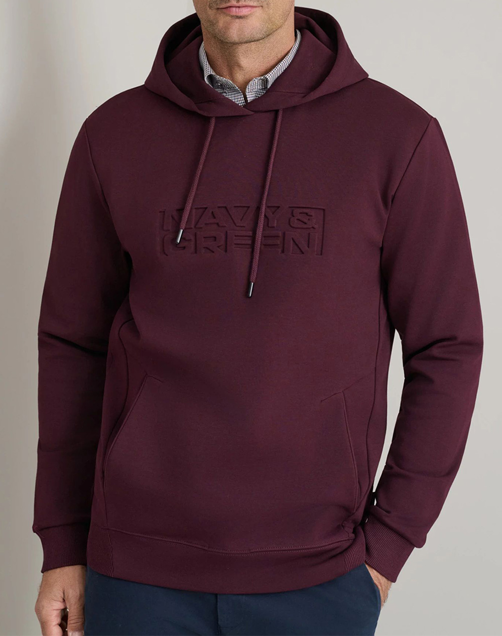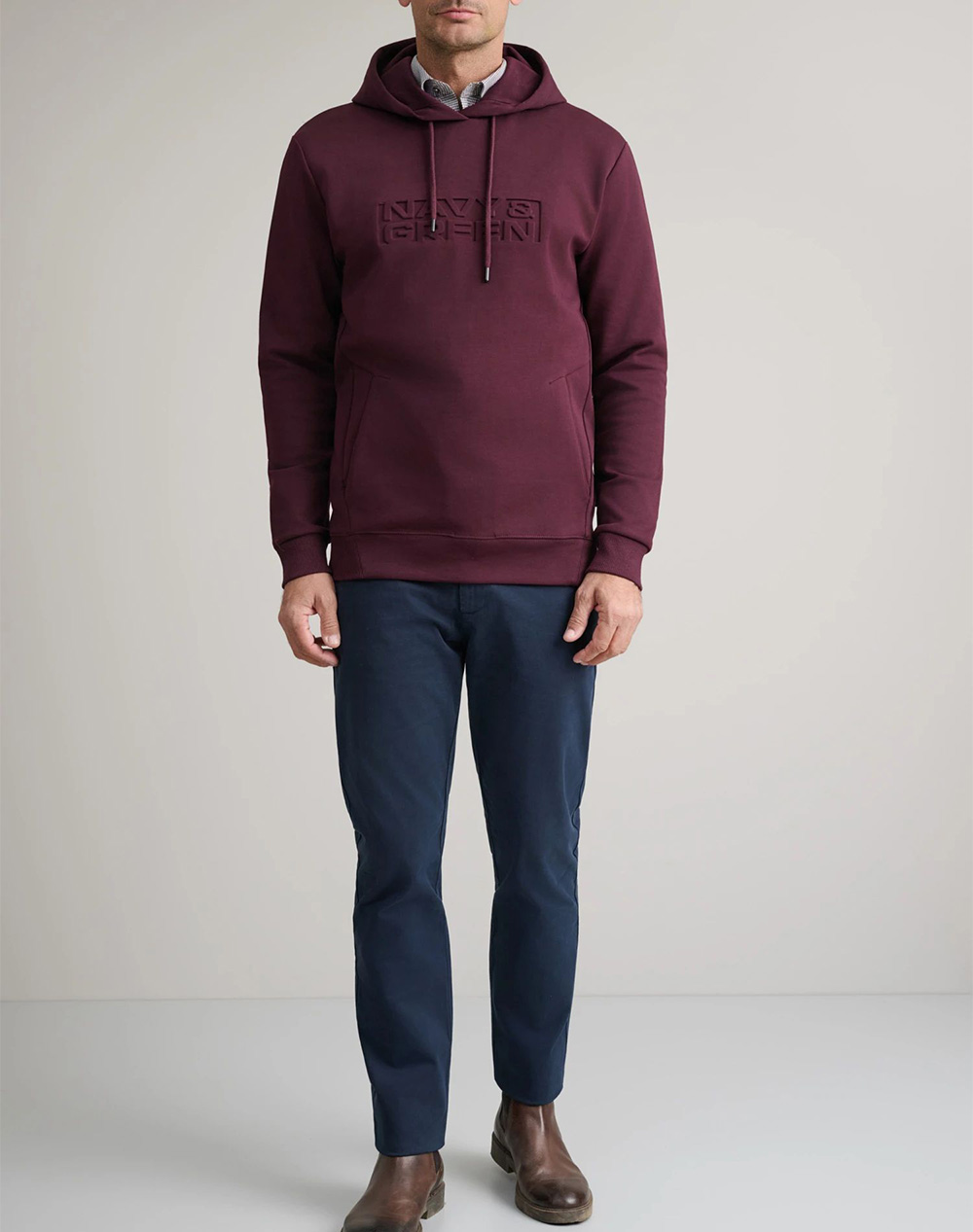 Men's sweatshirt, regular fit, long sleeves, with embossed logo on the front, kangaroo pocket and hood with adjustable drawstring. (Composition: 79% Cotton, 13% Polyester, 8% Elastane)