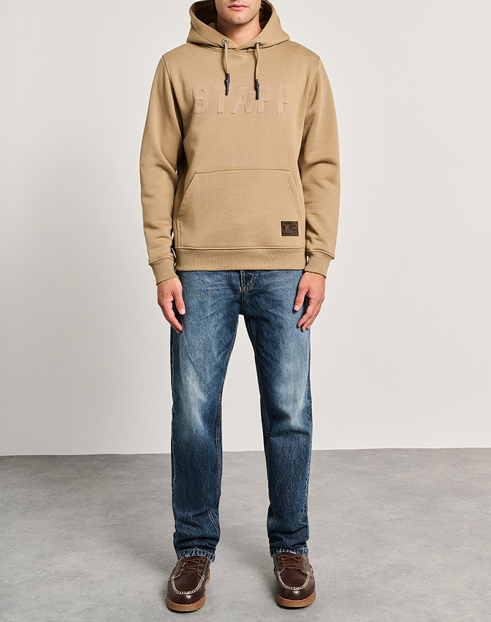 Ανδρική μπλούζα φούτερ, σε κανονική γραμμή, μακρυμάνικη, με ανάγλυφο λογότυπο μπροστά, τσέπη καγκουρό και ρυθμιζόμενη κουκούλα. (Σύνθεση: Βαμβακερό ύφασμα)