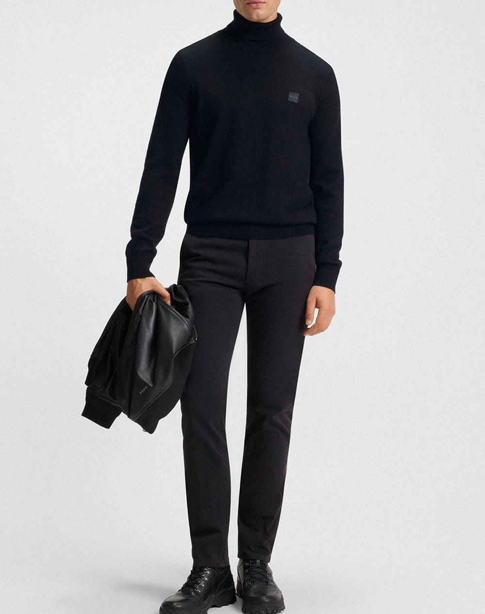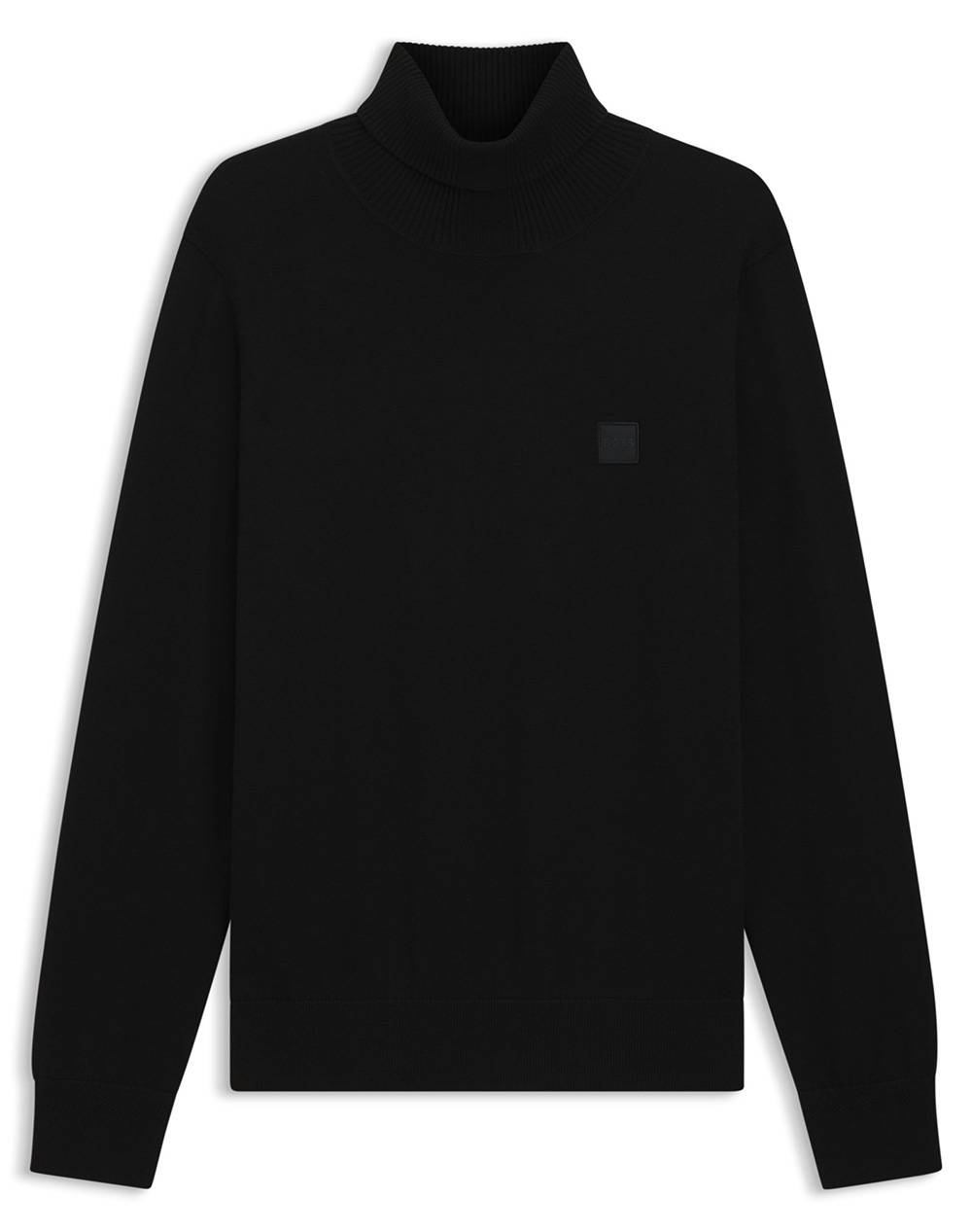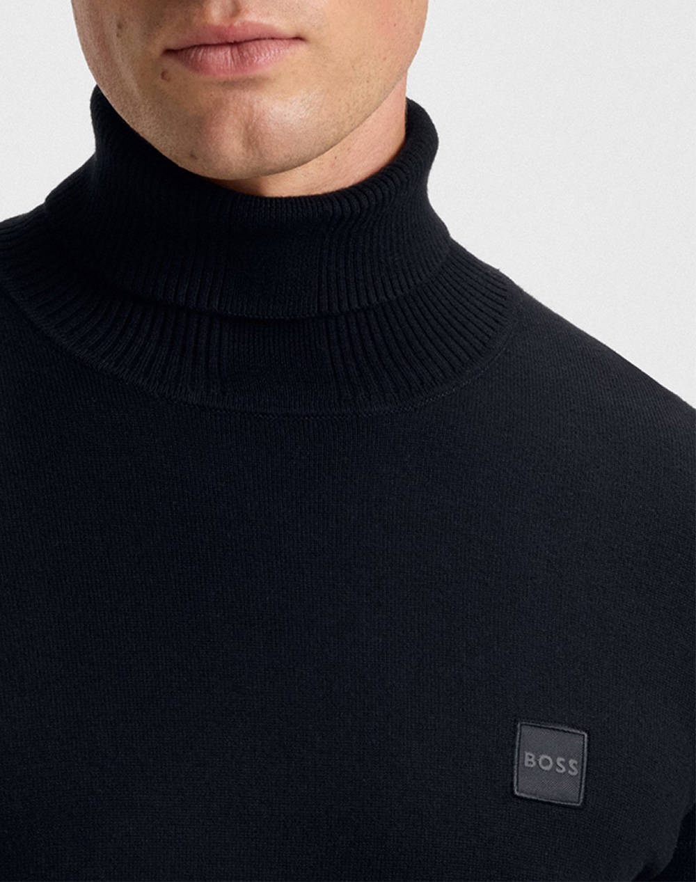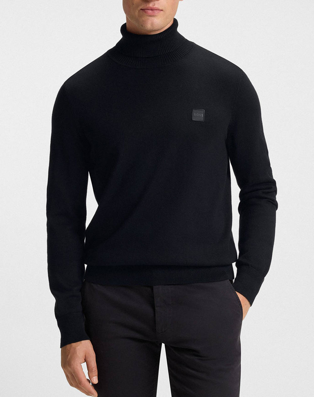 Men's sweater, regular fit, long sleeves, with turtleneck and logo on the chest. (Composition: 95% Cotton, 5% Cashmere)