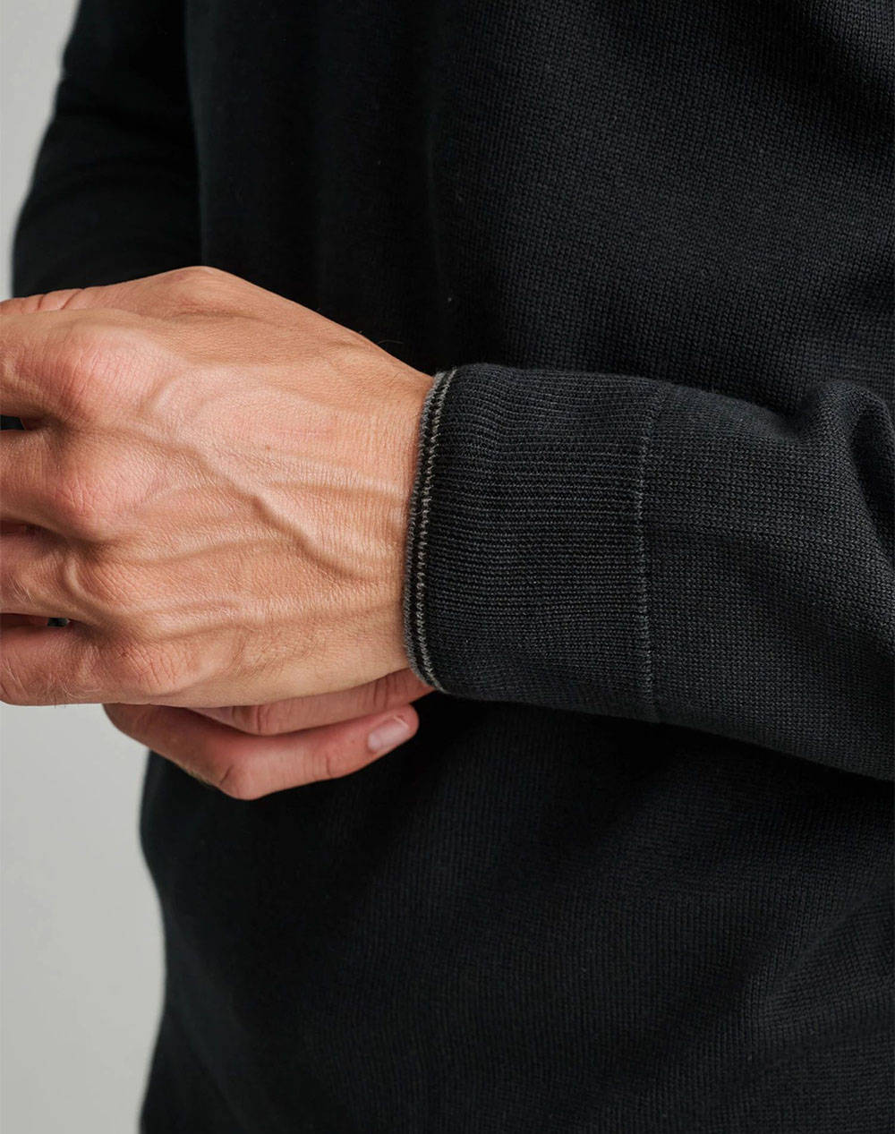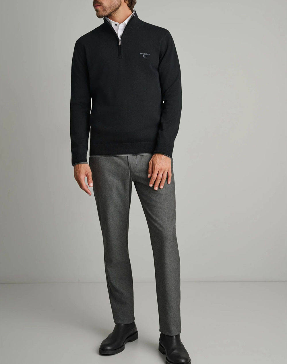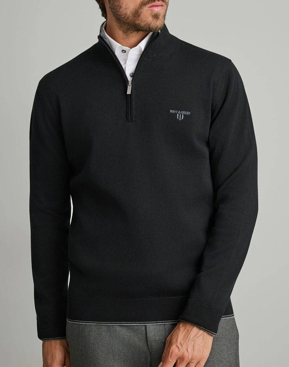 Men's knitted shirt, regular fit, solid color, long sleeve, with high neckline with zip and contrast color inside the collar. (Composition: 100% Cotton)
