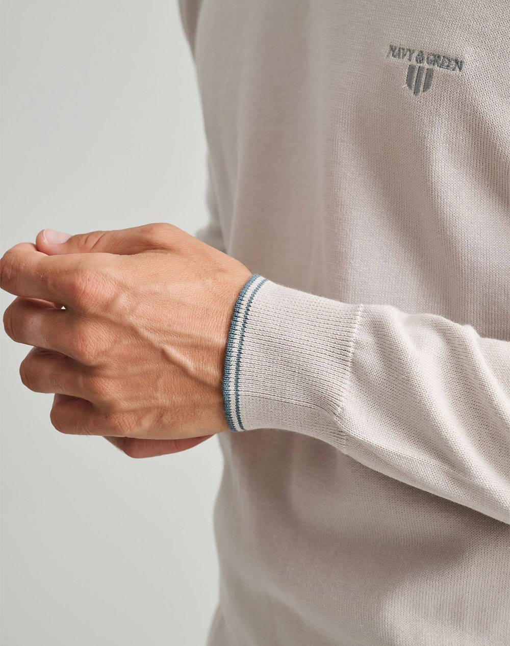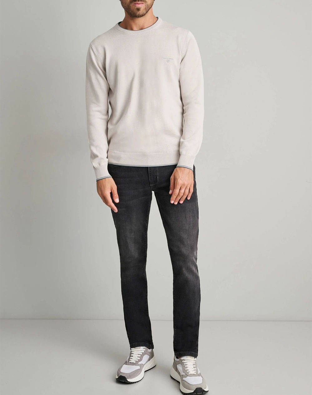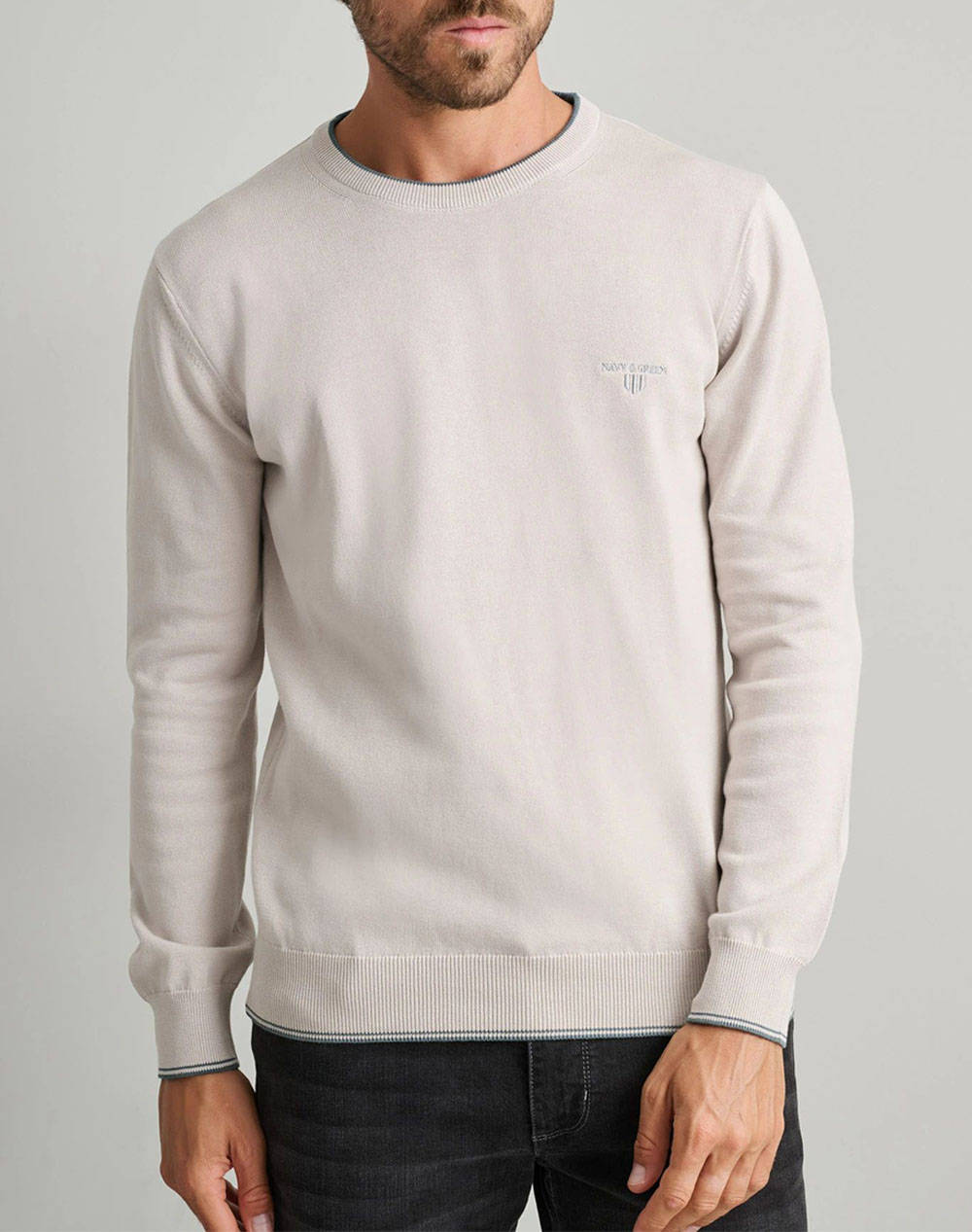 Men's knitted shirt, regular fit, solid color, long sleeve, with round neckline with contrast detail and logo on the chest. (Composition: 100% Cotton)