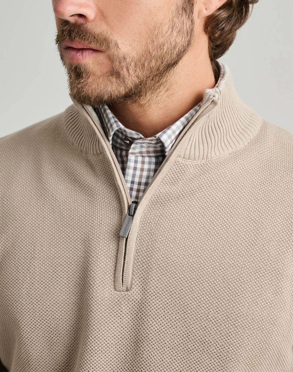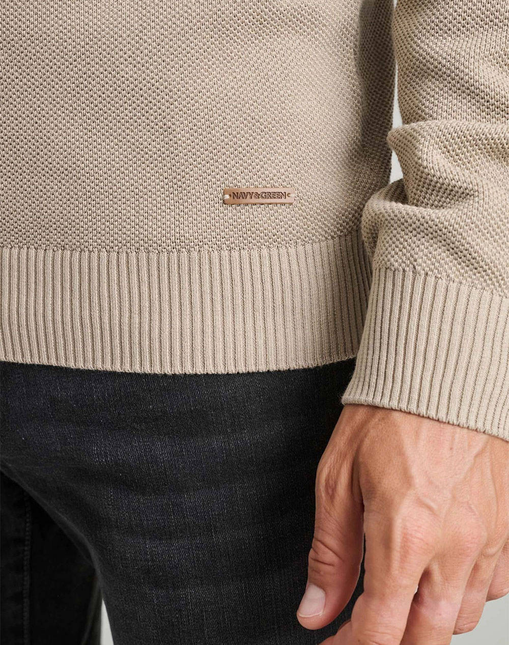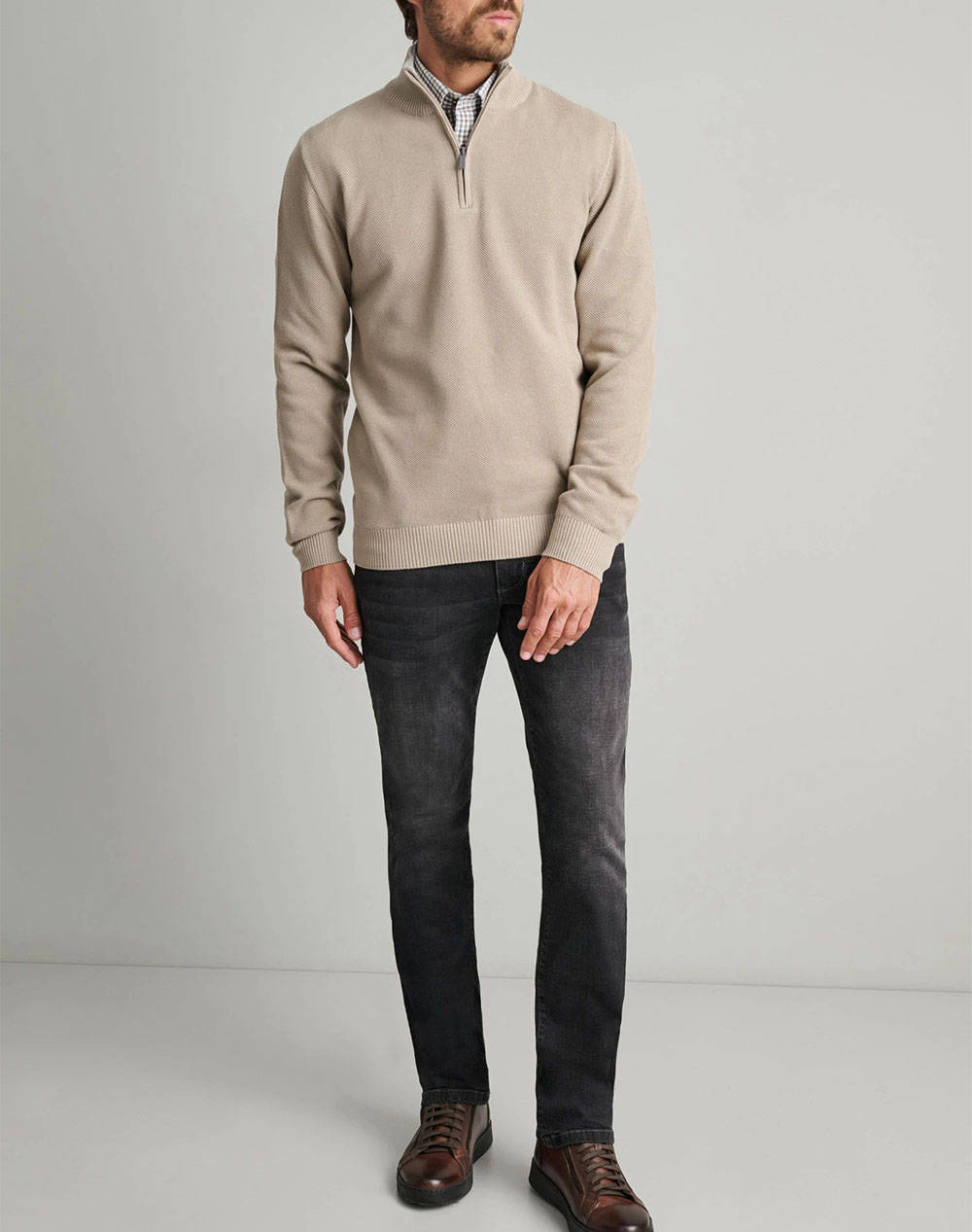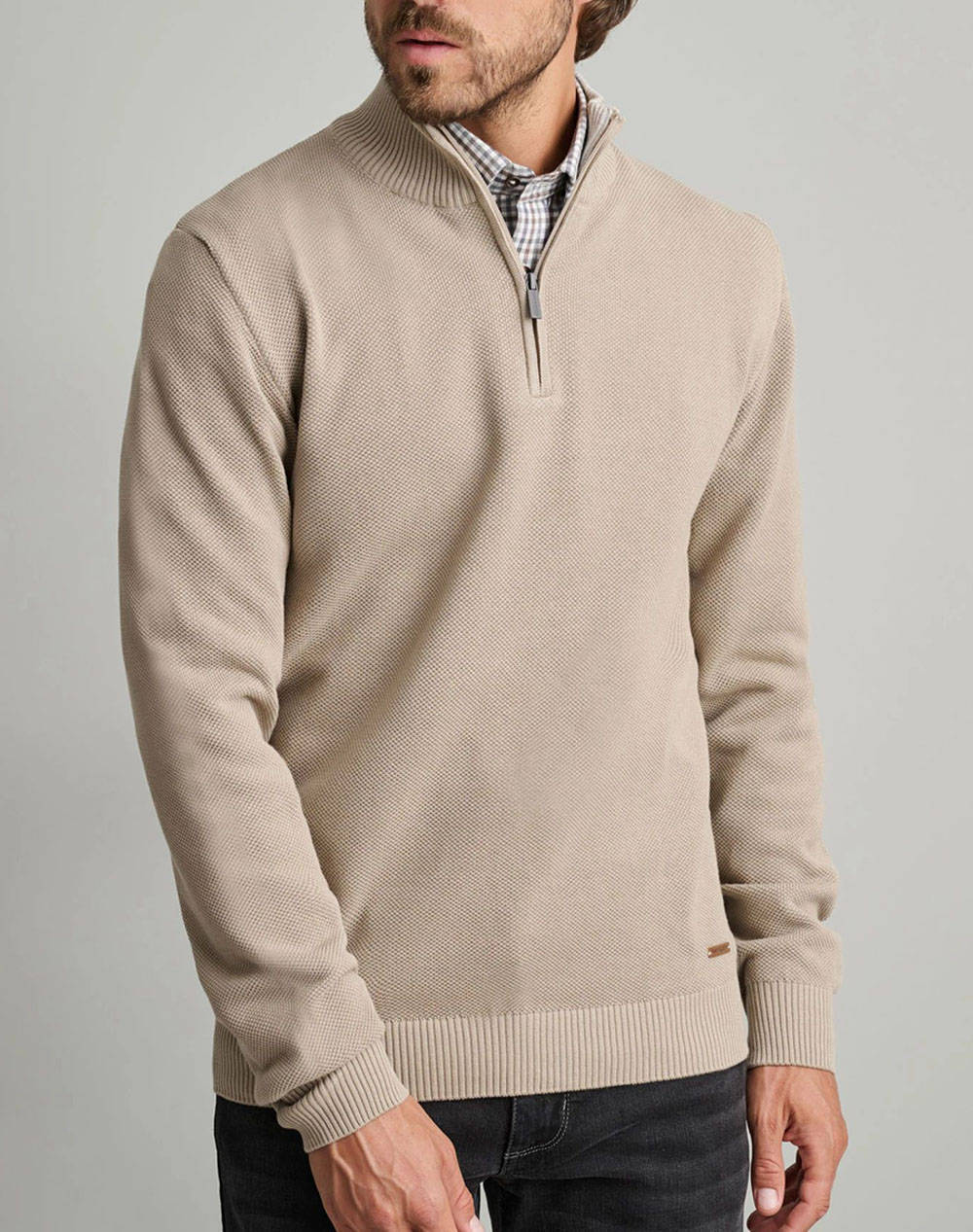 Men's knitted shirt, regular fit, solid color, long sleeves, with Jacquard knit and high neck with zip. (Composition: 100% Cotton)