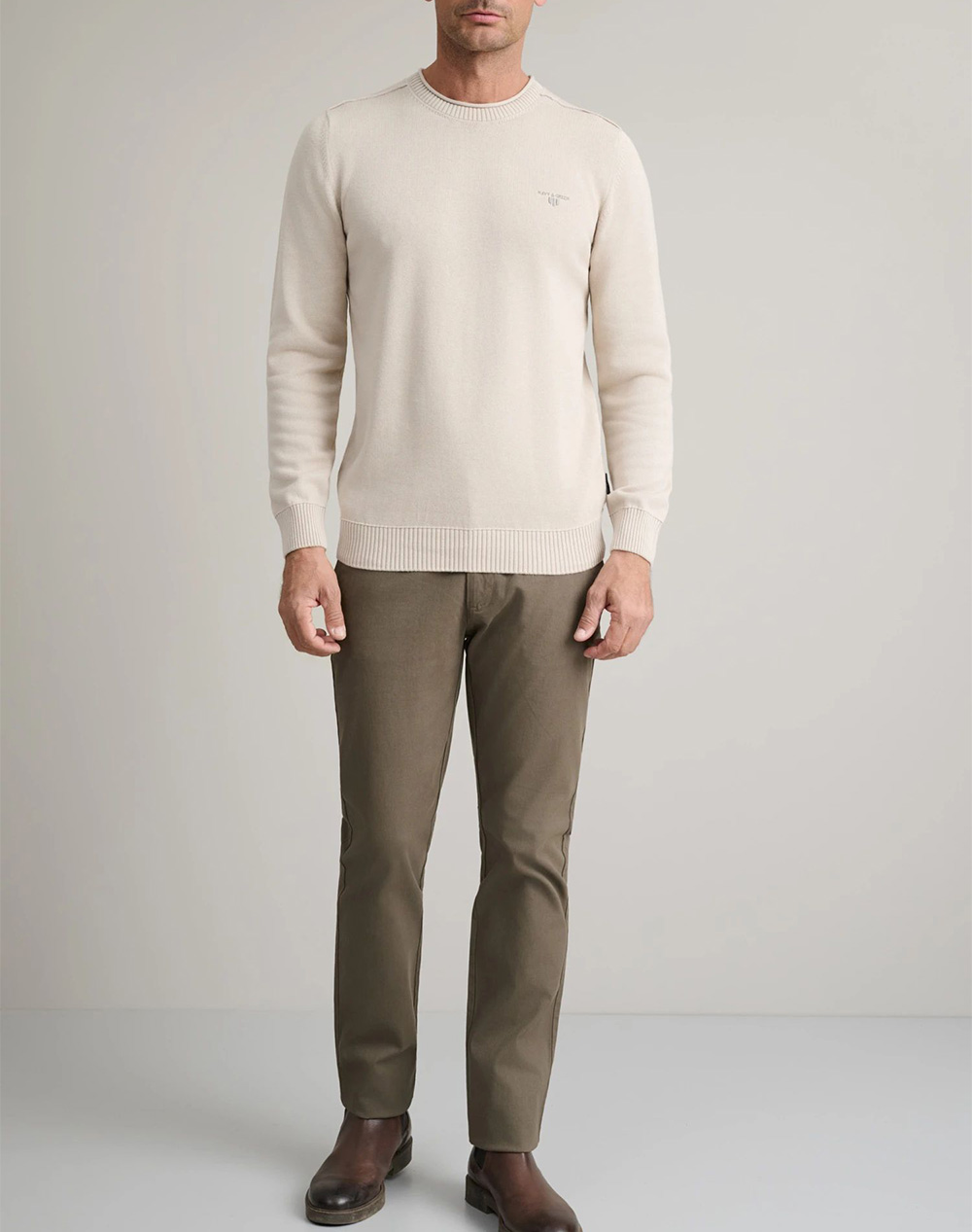 Men's knitted T-shirt, regular fit, long sleeves, with embroidered logo on the chest and raw cut neckline. (Composition: 100% Cotton)