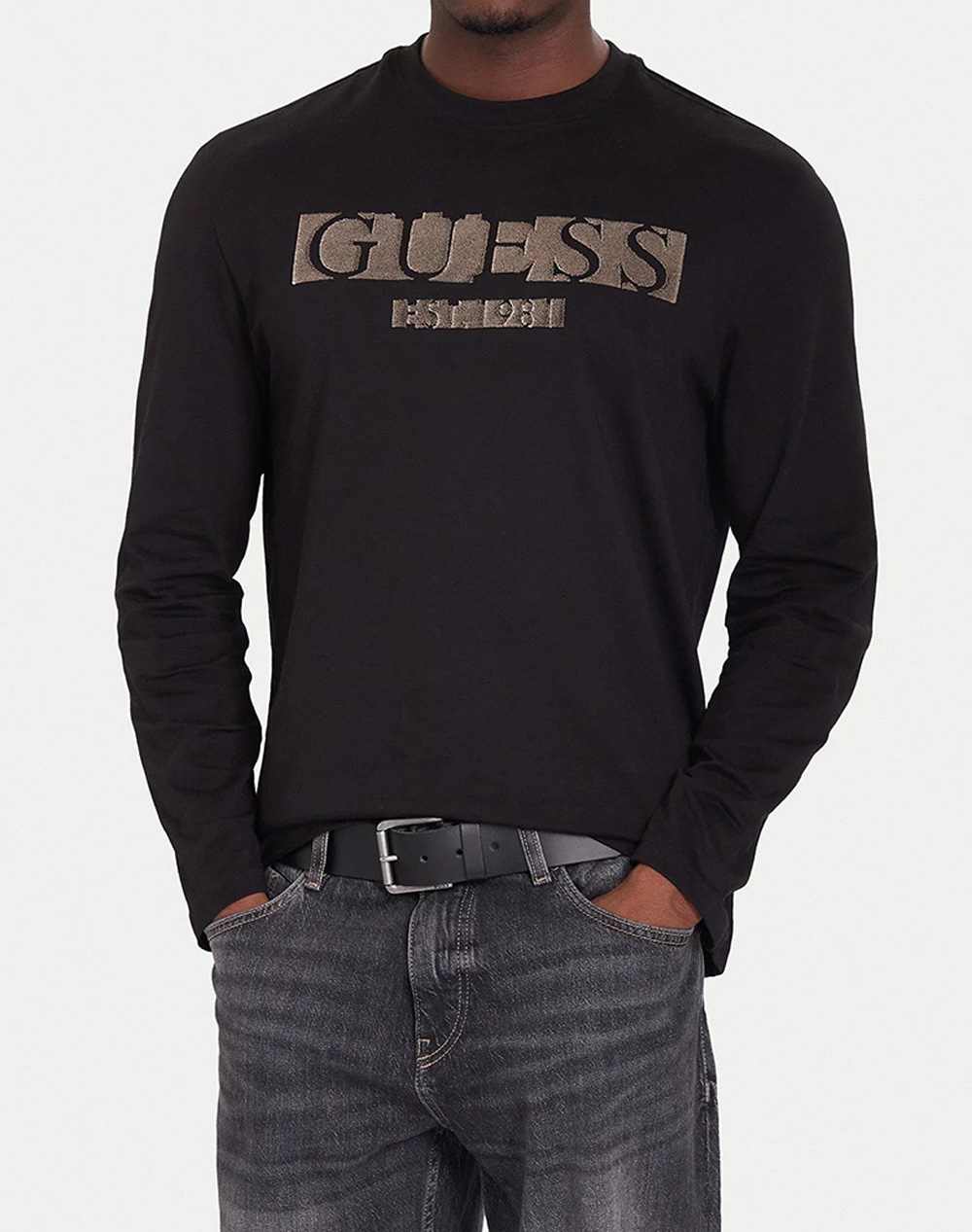 GUESS CN LS FLOCK LOGO TEE ΜΠΛΟΥΖΑ ΑΝΔΡΙΚΟ