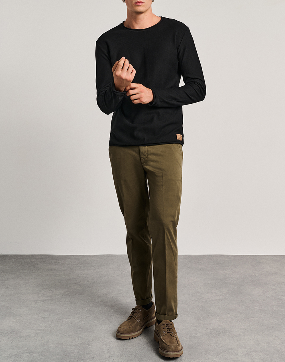 Ανδρική μπλούζα, σε κανονική γραμμή, μακρυμάνικη και με στρογγυλή λαιμόκοψη. (Σύνθεση: 43% Βαμβάκι, 56% Πολυεστέρας, 3% Ελαστάνη)