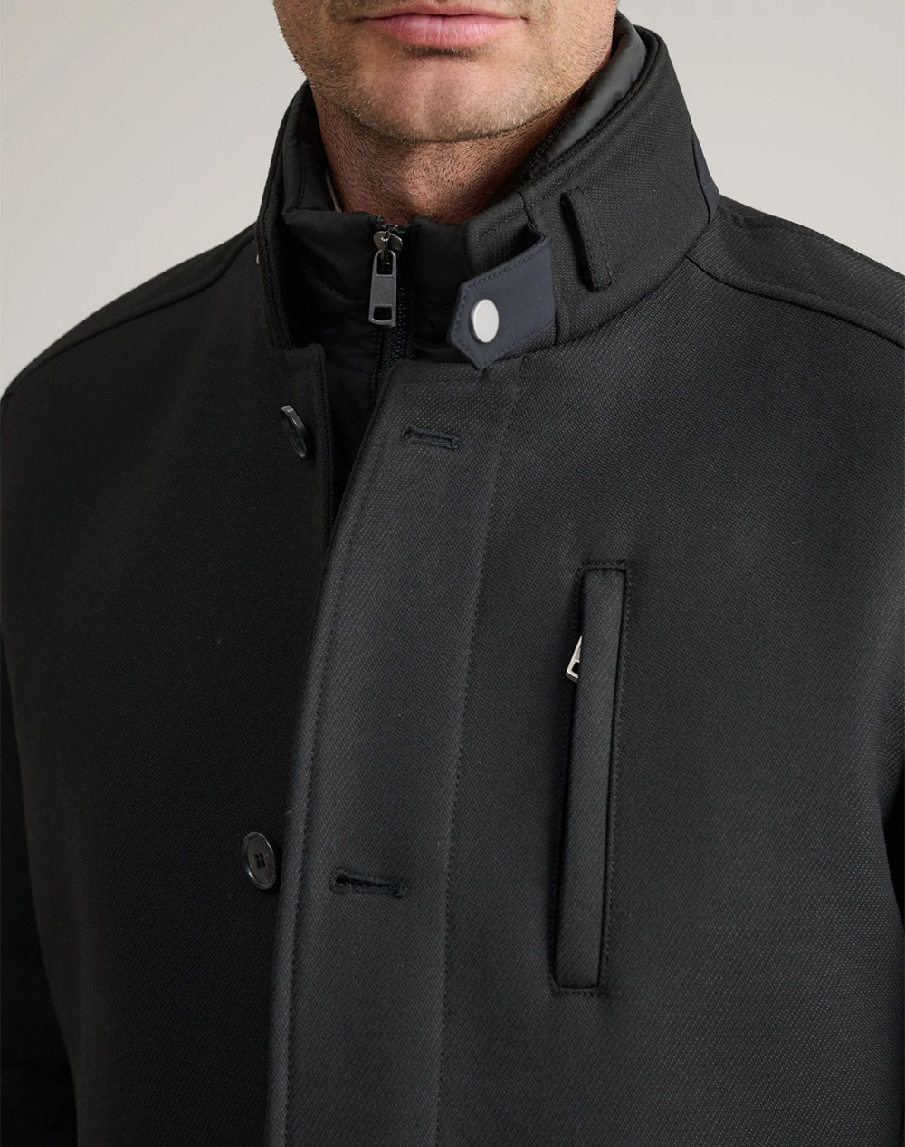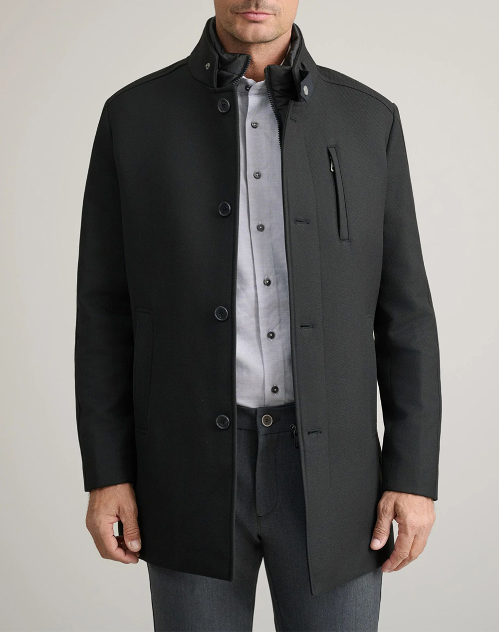 Men's mid-length coat, regular fit, with detachable vest with zipper, pockets, high neck and button closure. (Composition: 65% Polyester, 35% Viscose)
