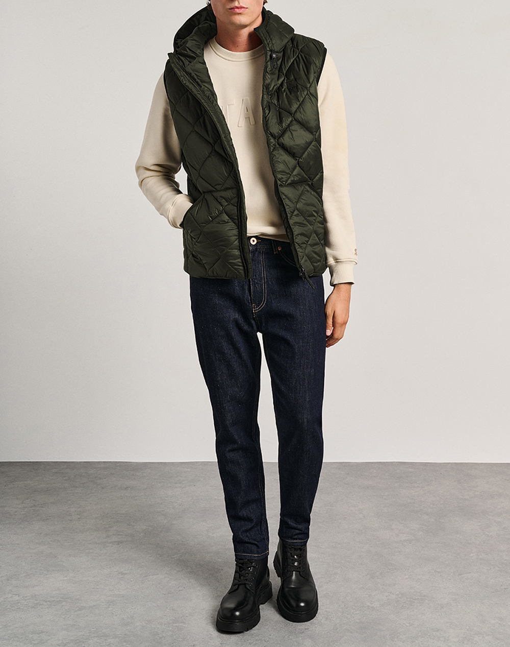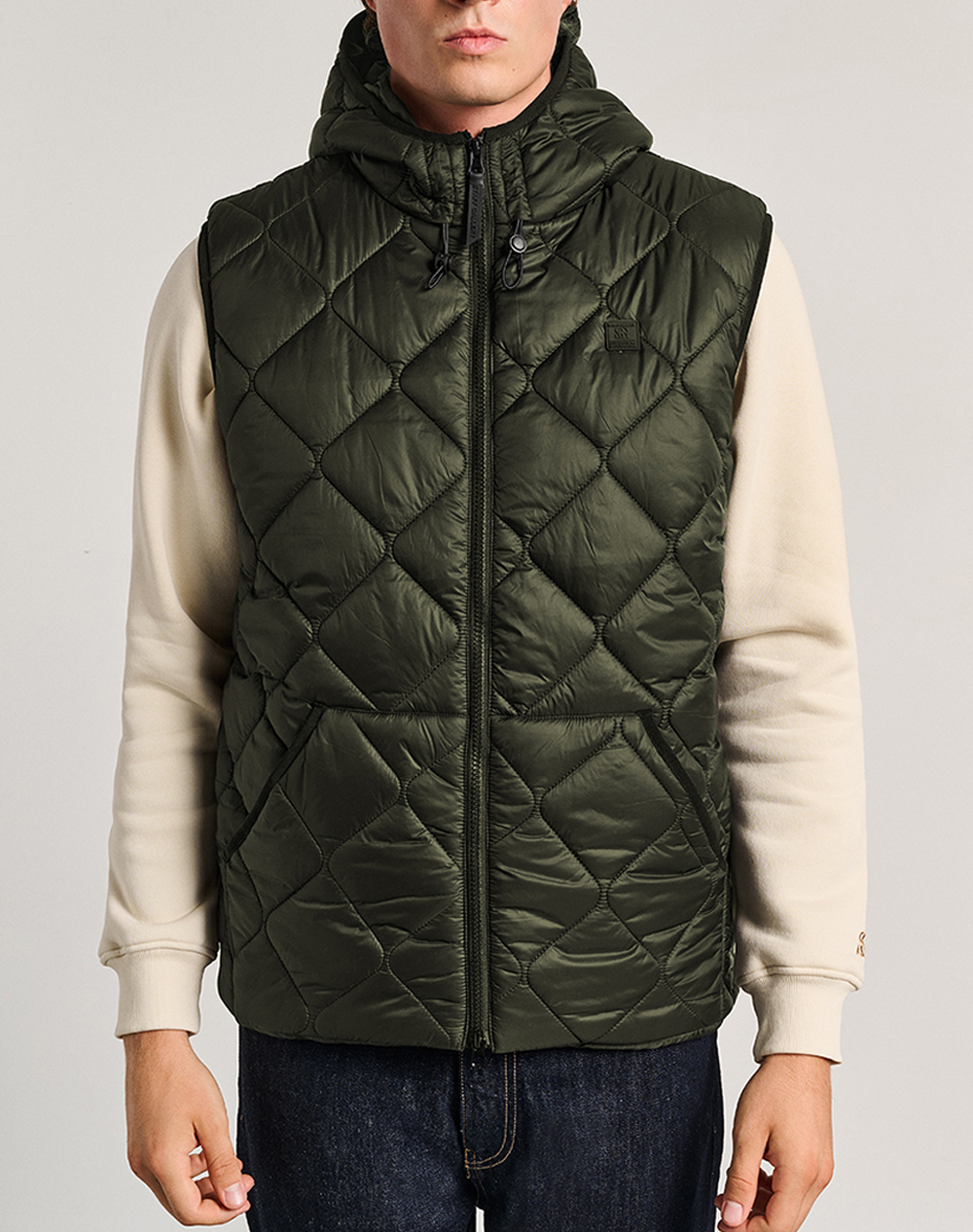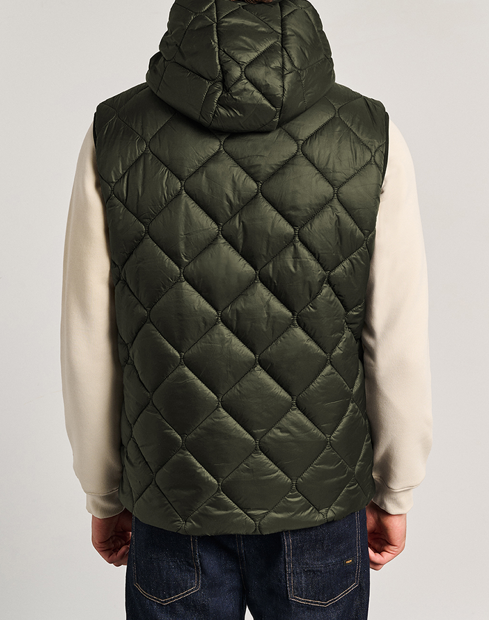Ανδρικό αμάνικο μπουφάν, σε κανονική γραμμή, με καπιτονέ σχέδιο, ρυθμιζόμενη κουκούλα, πλαϊνές τσέπες και κλείσιμο μπροστά με φερμουάρ. (Σύνθεση: 100% Πολυεστέρας)