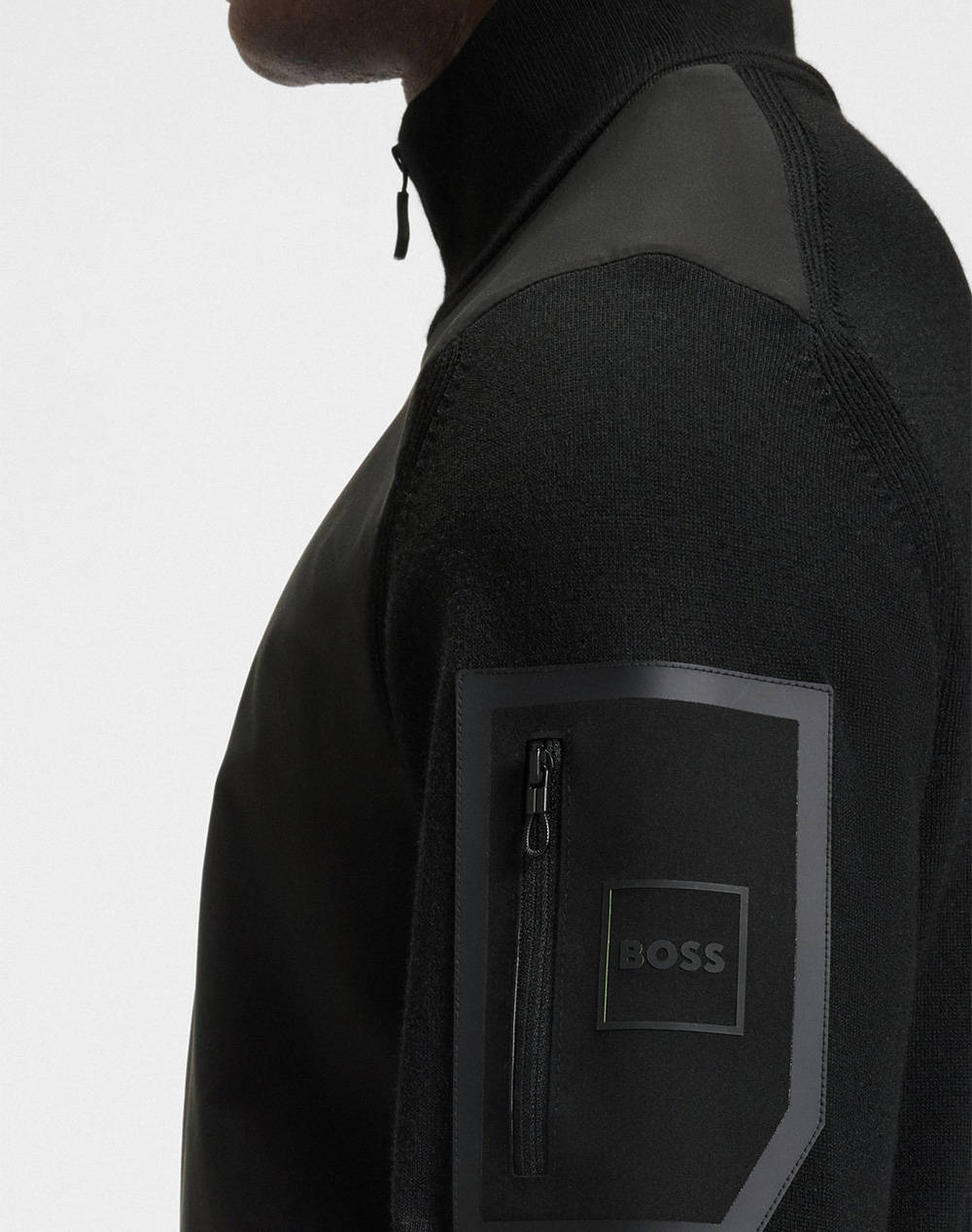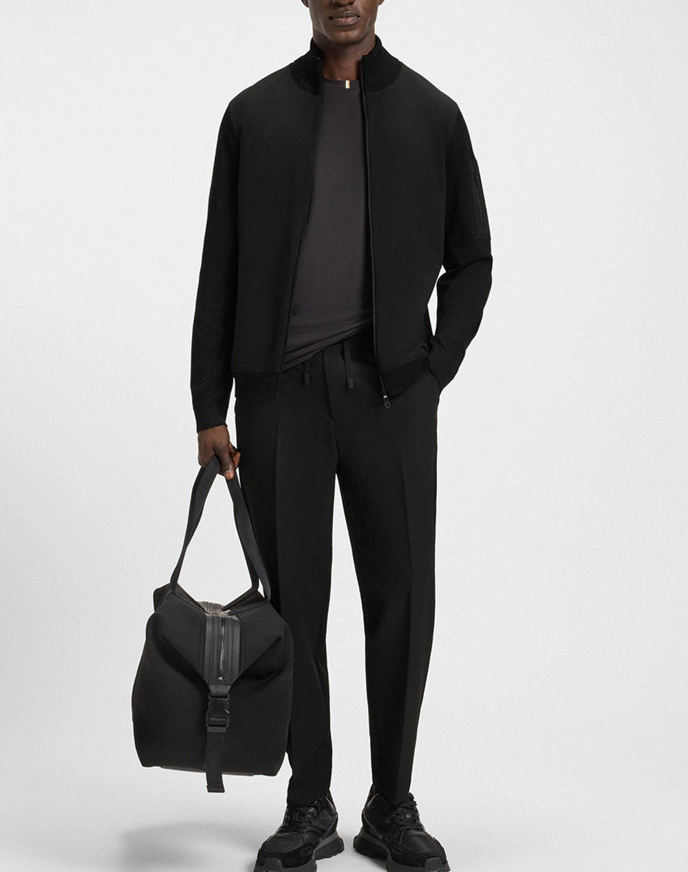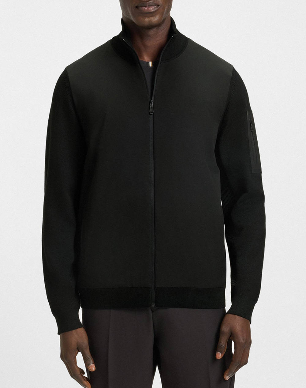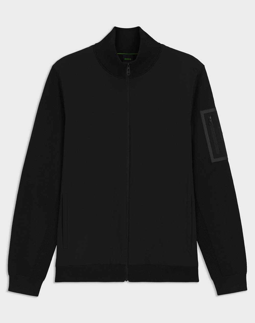 Men's jacket, regular fit, with rib cuffs, two side pockets and one on the sleeve. Front zip closure. (Composition: 48% Polyester, 39% Virgin Wool, 11% Polyamide, 2% Elastane)