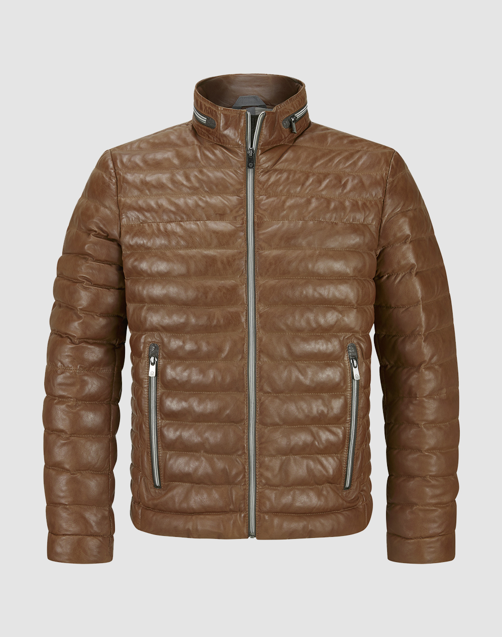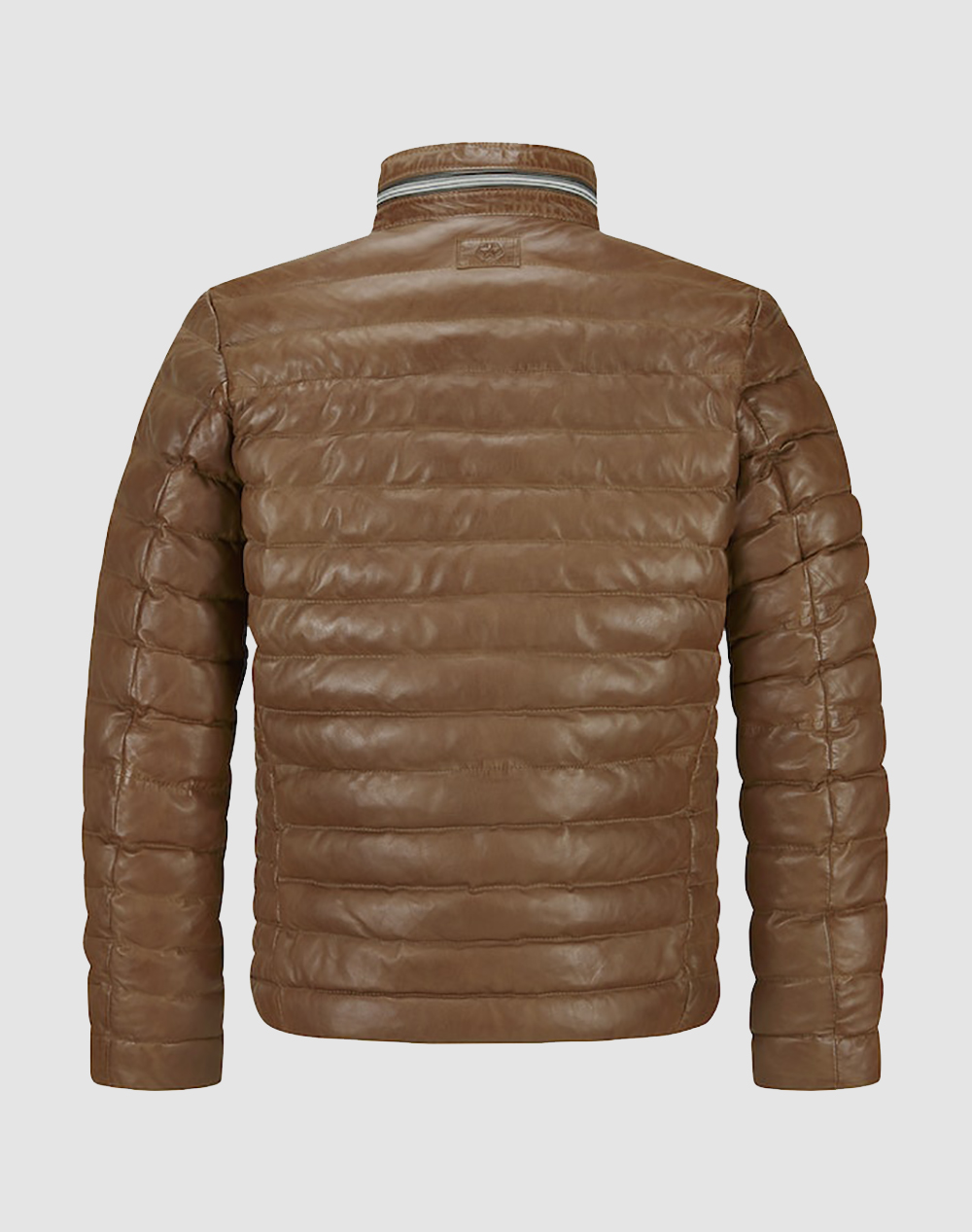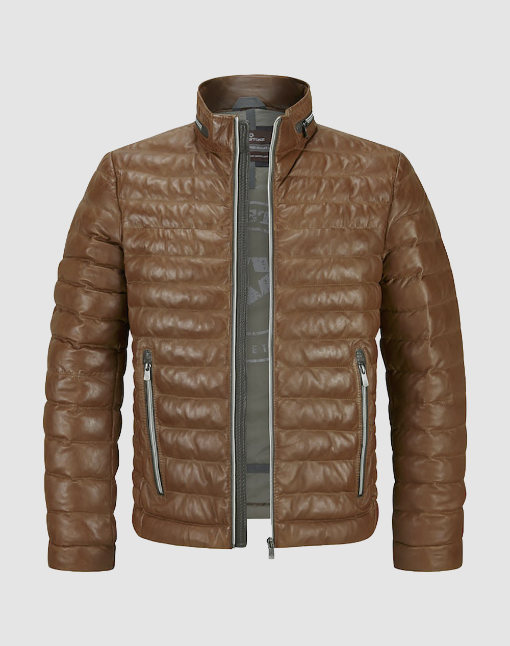 Ανδρικό μπουφάν, μακρυμάνικο, με καπιτονέ σχέδιο, τσέπες στο πλάι, ψηλό λαιμό και κλείσιμο με φερμουάρ. (Σύνθεση: 100% Δέρμα)