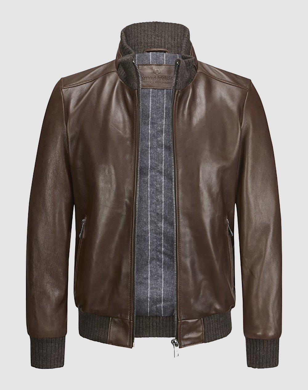 Ανδρικό μπουφάν, σε κανονική γραμμή, μακρυμάνικο, με τσέπες στο πλάι, ψηλό λαιμό και κλείσιμο με φερμουάρ. (Σύνθεση: 100% Δέρμα)
