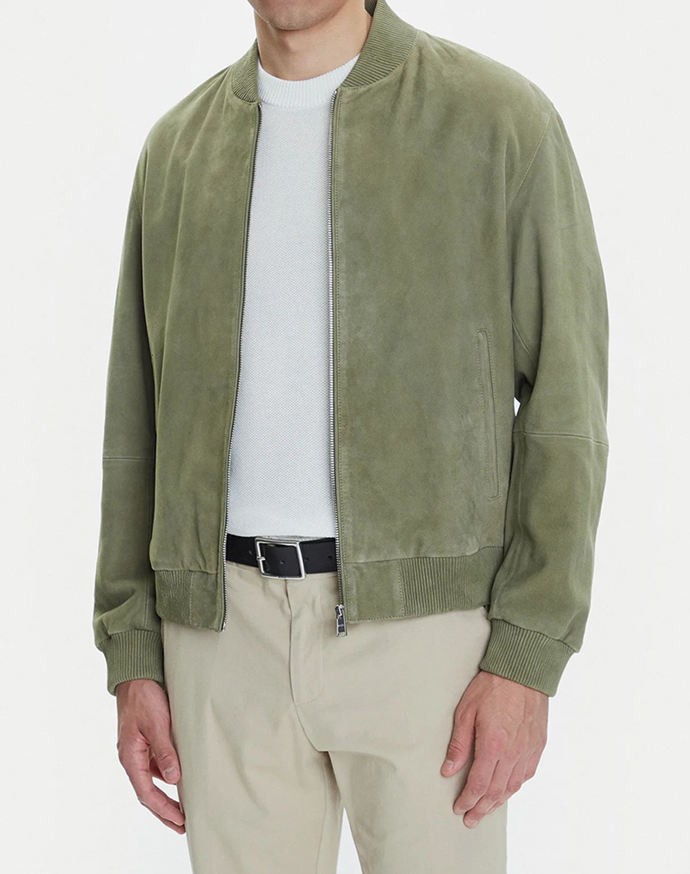 Men's bomber jacket, regular fit, with ribbed edges, side pockets and zipper closure. (Composition: 100% Suede Leather)