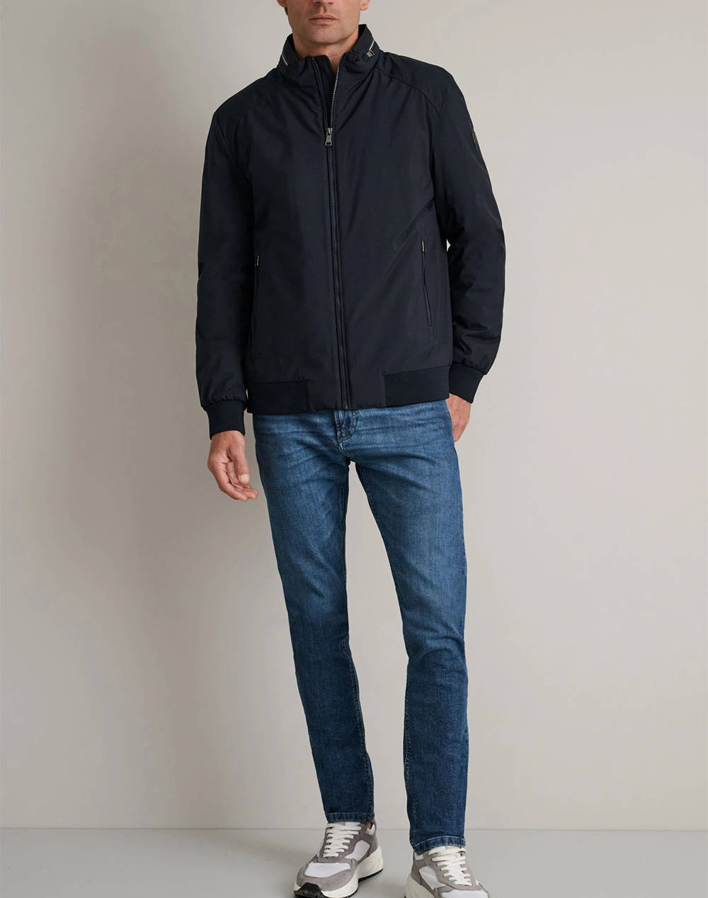 Men's jacket, regular fit, solid color, long sleeves, with side pockets, logo on the sleeve and zipper closure. (Composition: 100% Polyester)