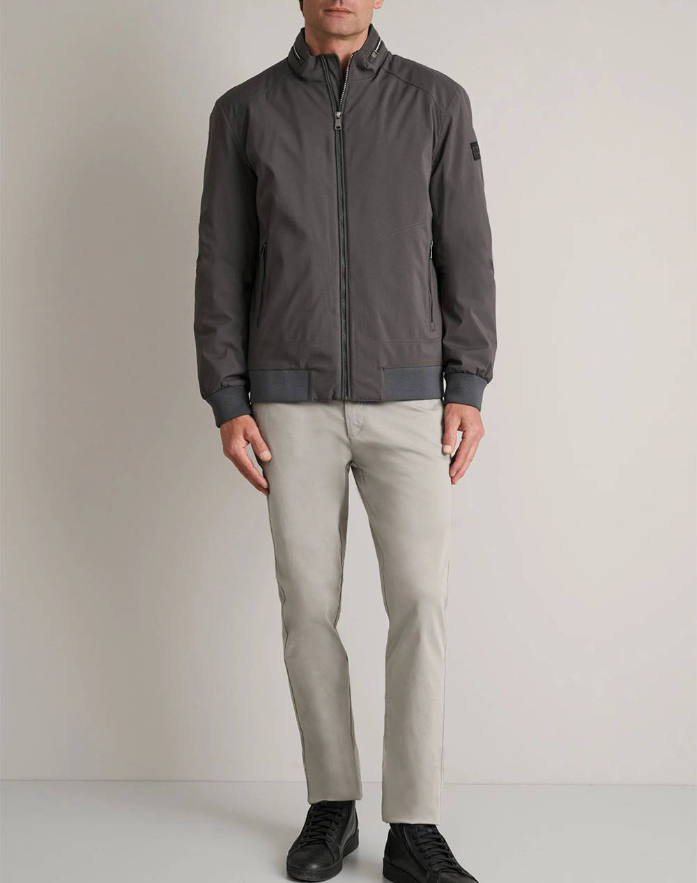 Men's jacket, regular fit, solid color, long sleeves, with side pockets, logo on the sleeve and zipper closure. (Composition: 100% Polyester)