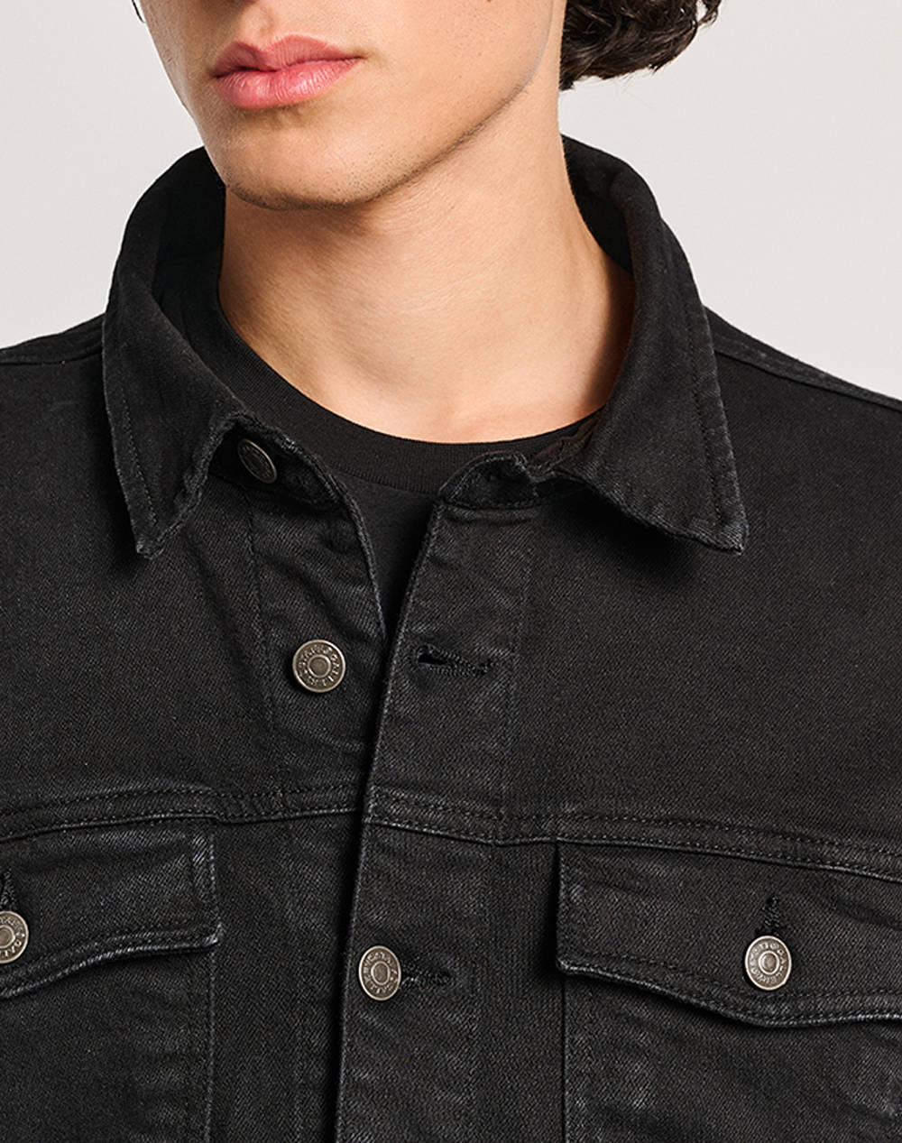 Men's denim jacket, solid color, long sleeves, with chest pockets and button closure. (Composition: 98.5% Cotton, 1.5% Elastane)