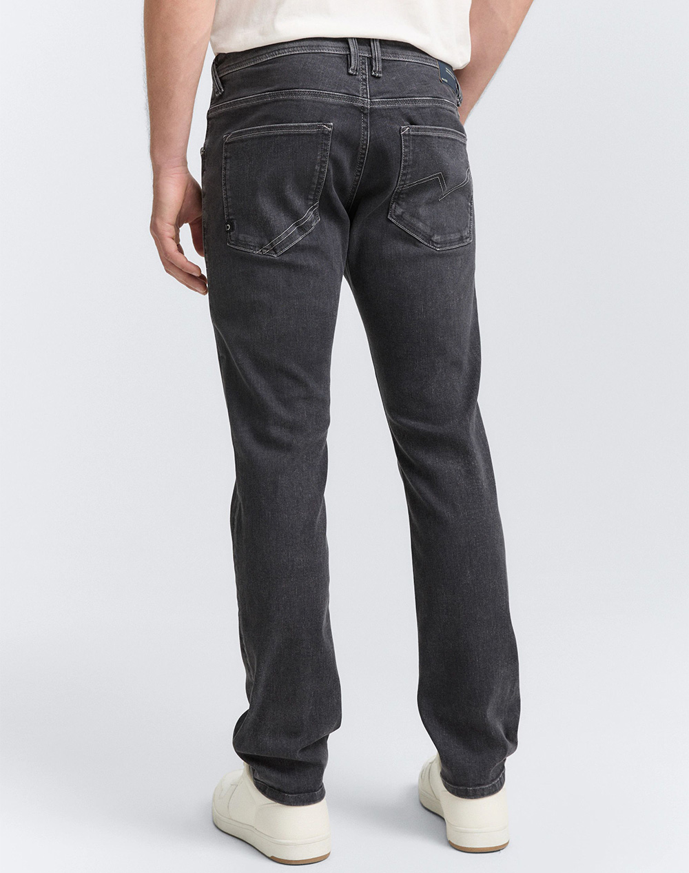 Men's straight-leg jeans with a regular waist, five-pocket design and front closure with zipper and button. (Composition: 70% Cotton, 28% Recycled Polyester, 2% Elastane)