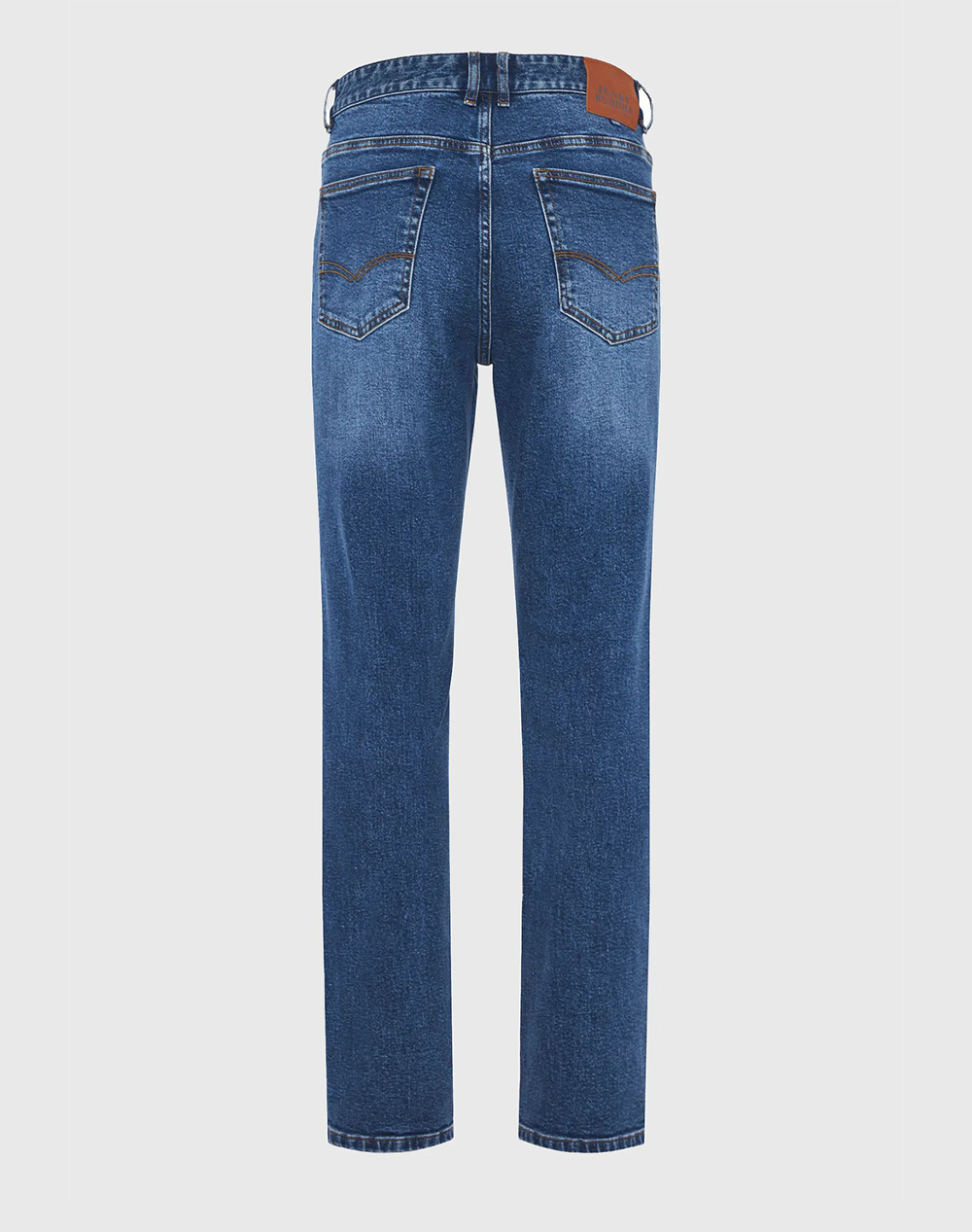 Men's jeans, in a narrow, straight, line, with a five-pocket design and a zipper and button closure. (Composition: 99% Cotton, 1% Elastomer Polyurethane)