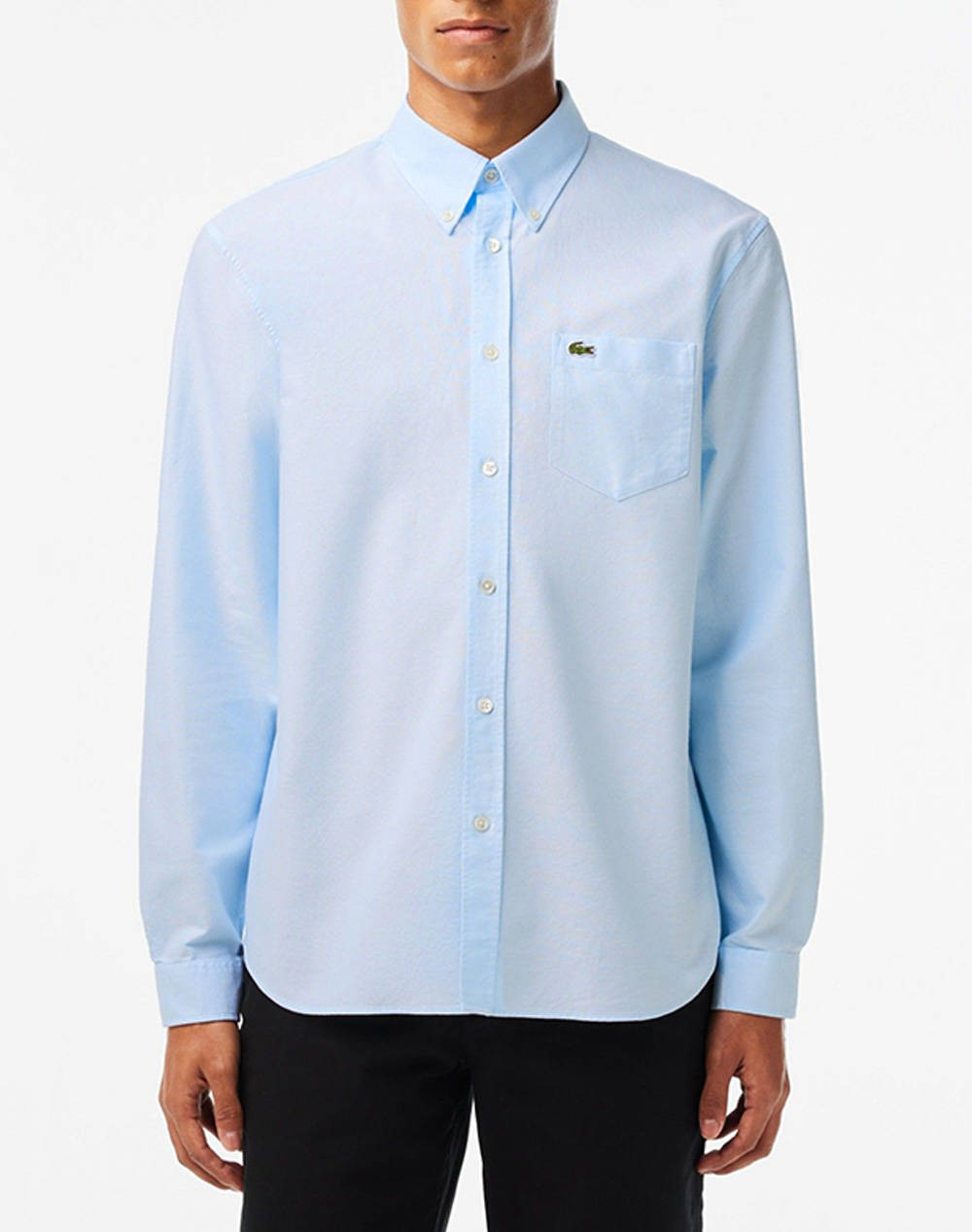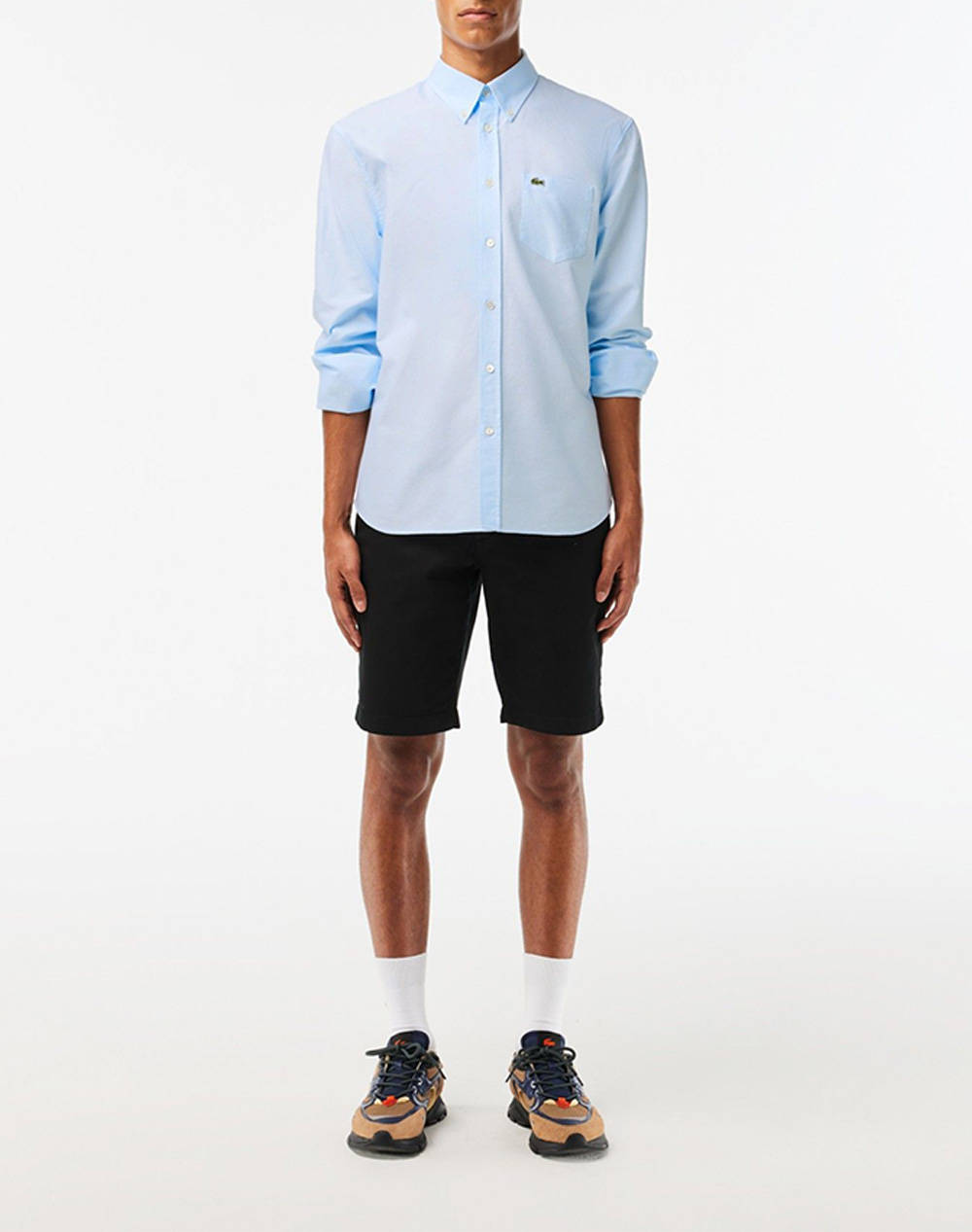 Men's shirt, regular, straight fit, long sleeve, solid color, with button down collar, chest logo pocket and button closure. (Composition: 100% Cotton)