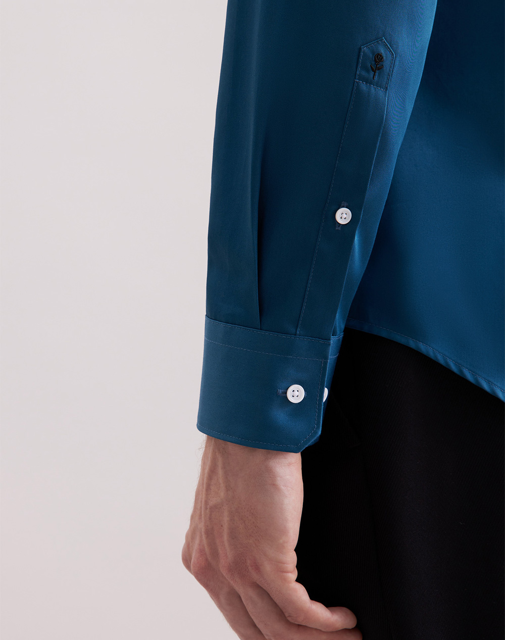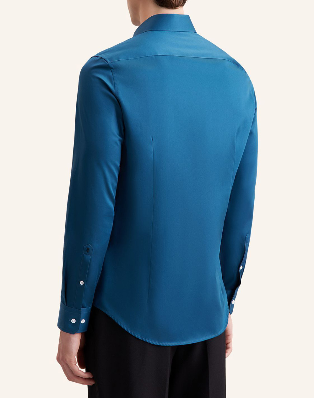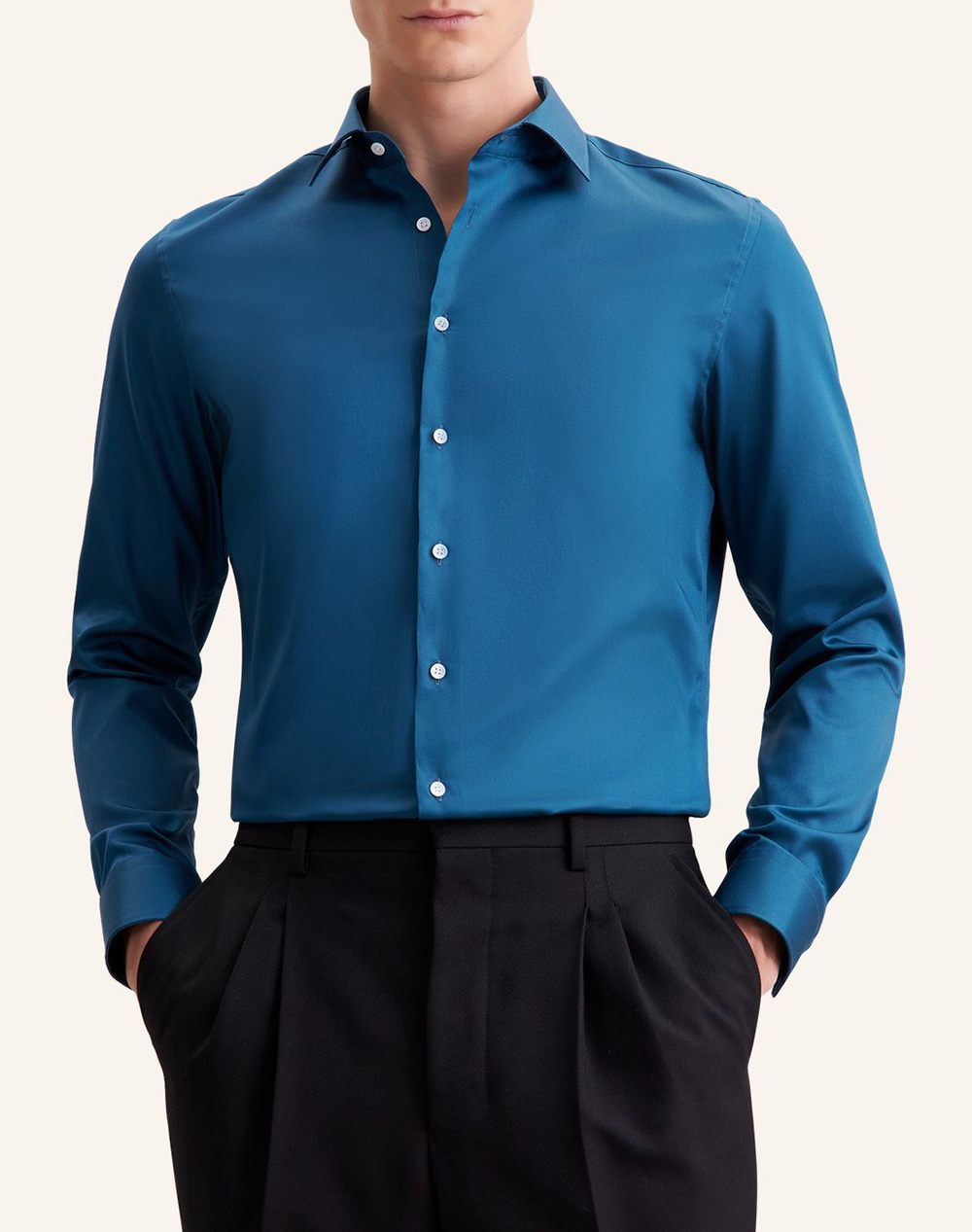 Ανδρικό πουκάμισο, σε στενή γραμμή, μακρυμάνικο, με γιακά Kent, σατέν βαμβακερή ύφανση και κλείσιμο μπροστά με κουμπιά. Με τεχνολογία για εύκολο σιδέρωμα. (Σύνθεση: 100% Βαμβάκι)