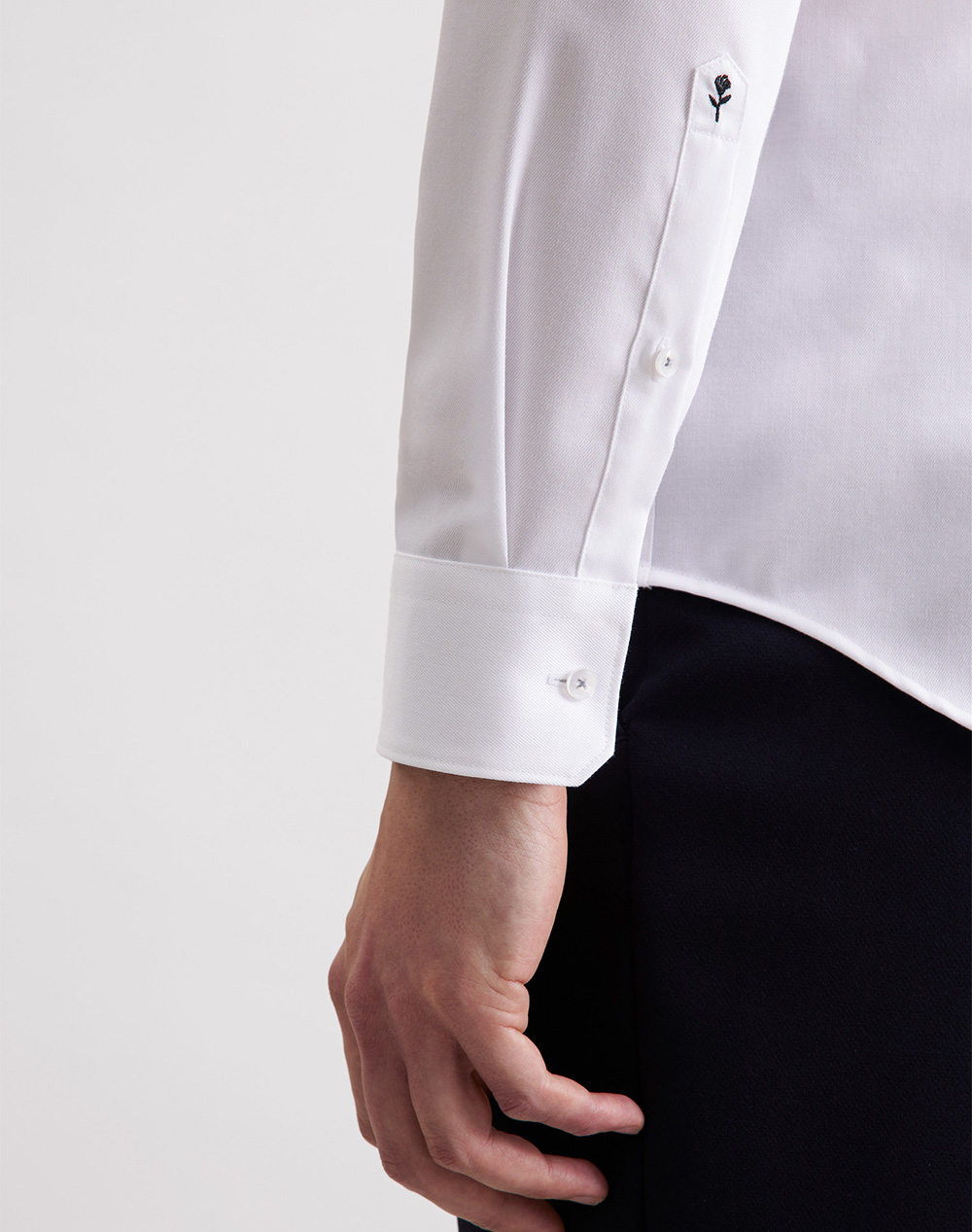 Ανδρικό πουκάμισο, σε κανονική γραμμή, μακρυμάνικο, με γιακά Kent, twill ύφανση, φλοράλ λεπτομέρειες και κλείσιμο μπροστά με κουμπιά. Με τεχνολογία χωρίς σιδέρωμα. (Σύνθεση: 100% Βαμβάκι)