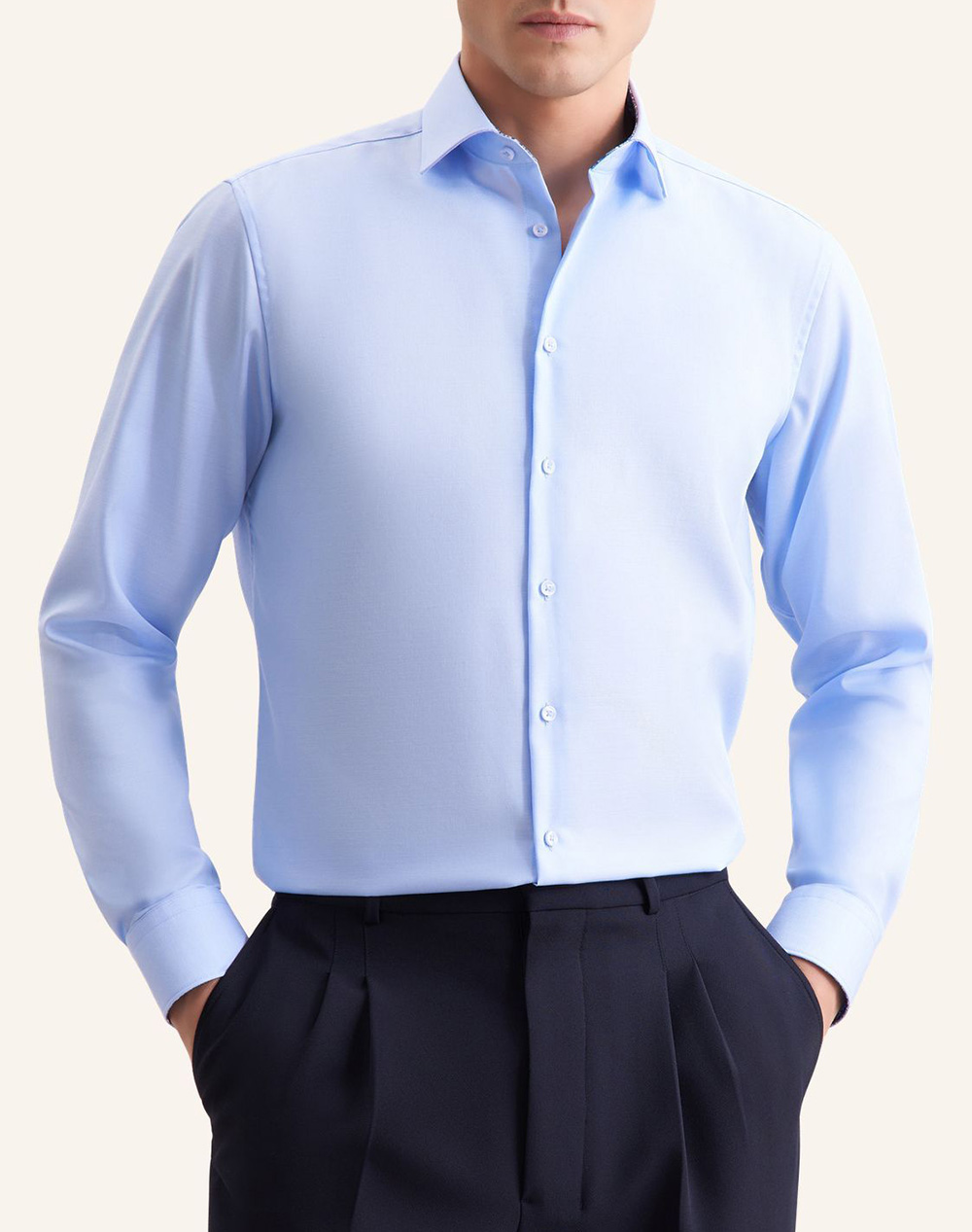 Ανδρικό πουκάμισο, σε κανονική γραμμή, μακρυμάνικο, με γιακά Kent, twill ύφανση, φλοράλ λεπτομέρειες και κλείσιμο μπροστά με κουμπιά. Με τεχνολογία χωρίς σιδέρωμα. (Σύνθεση: 100% Βαμβάκι)