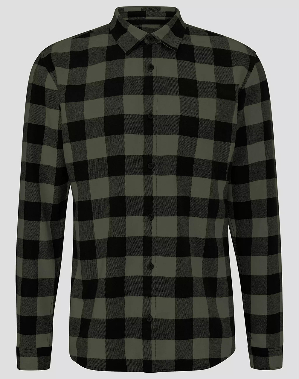Men's shirt, regular fit, long sleeve, with plaid pattern and front button closure. (Composition: 100% Cotton)