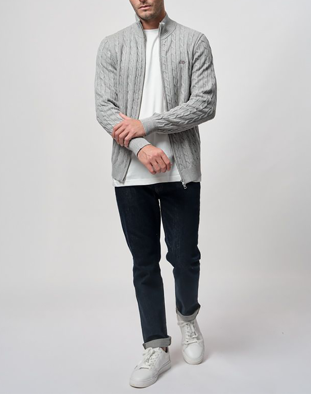 GANT COTTON CABLE ZIPPED CARDIGAN