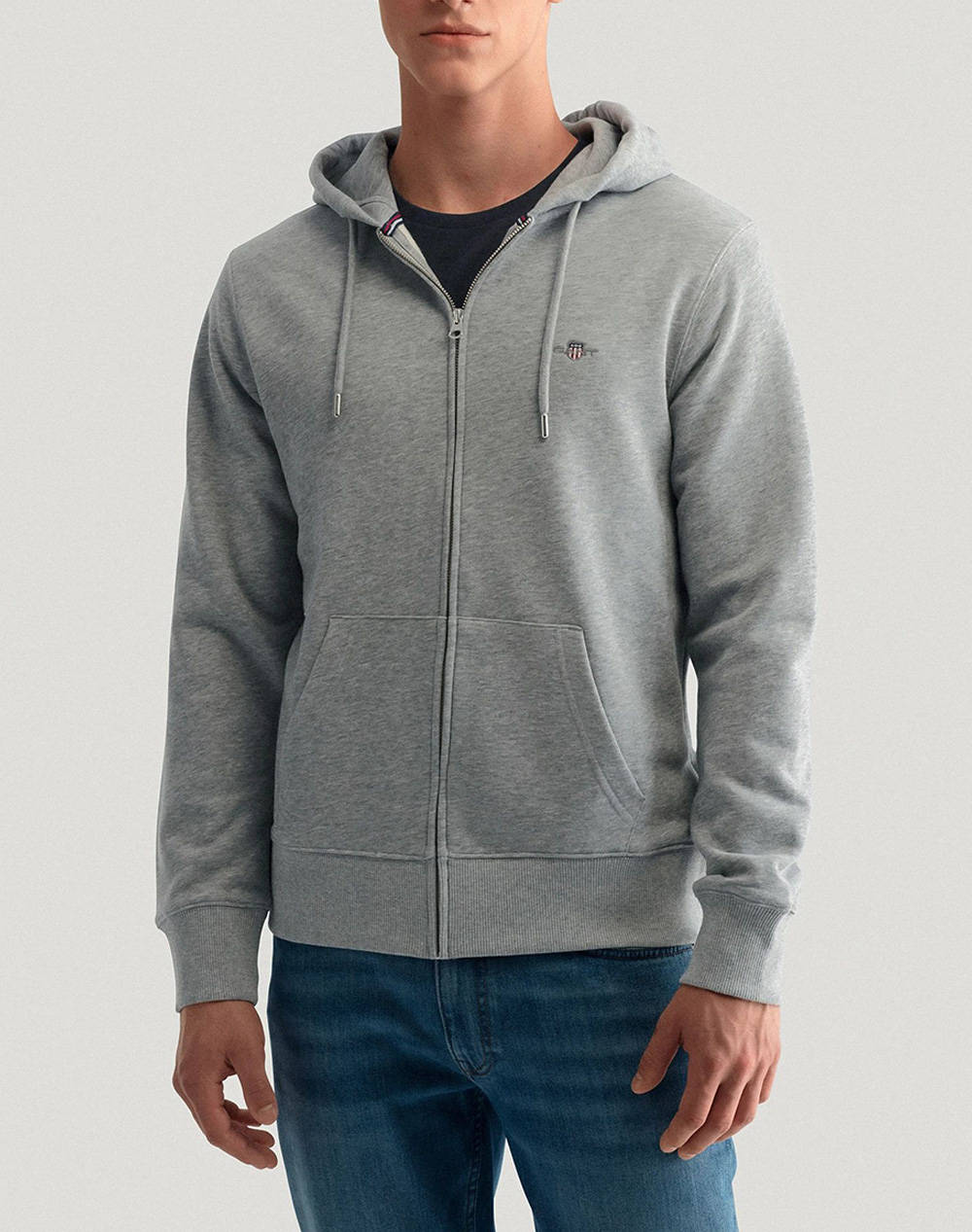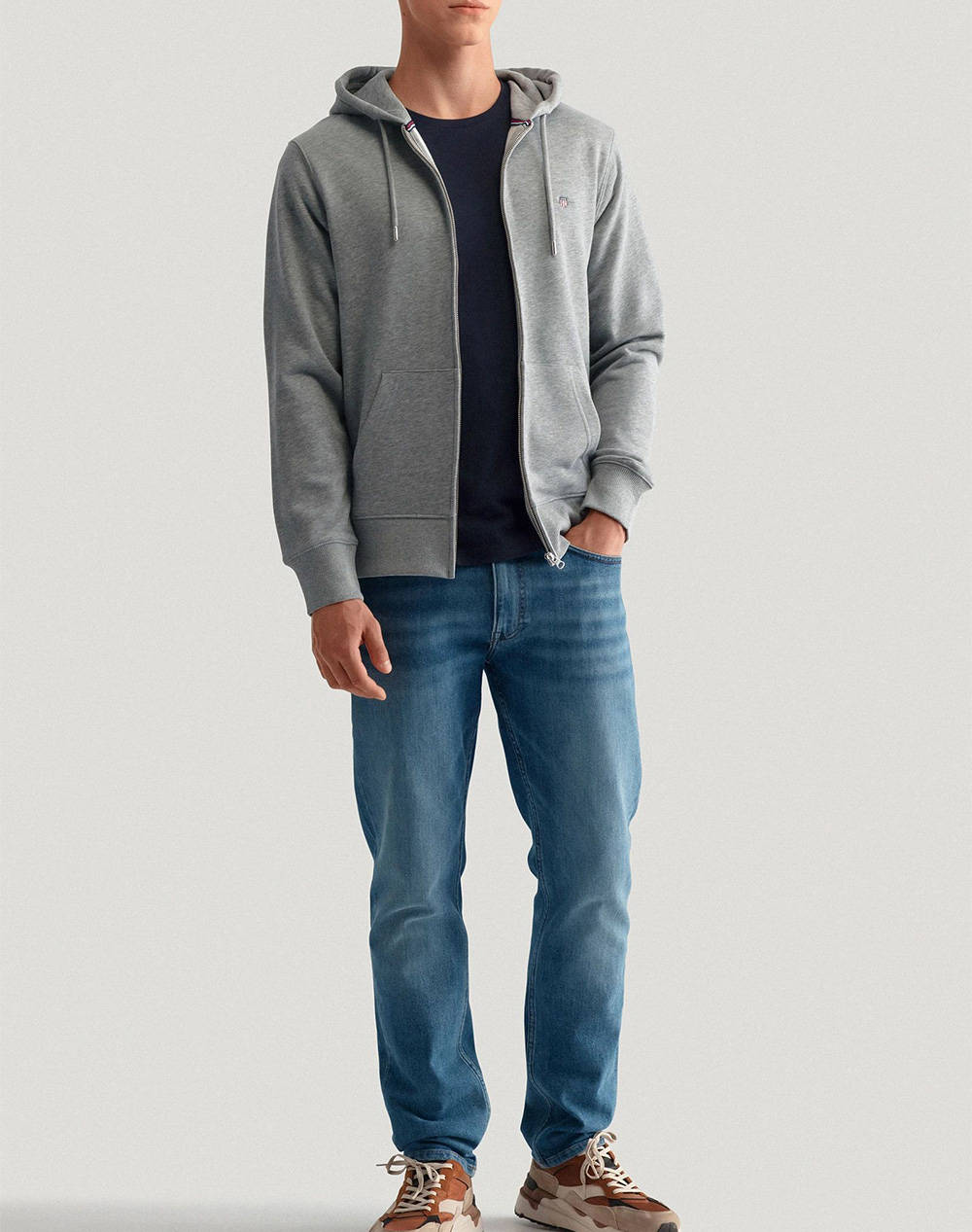 Men's sweatshirt, regular fit, long sleeve, with hood, kangaroo pockets and zipper closure. (Composition: 87% Cotton, 13% Recycled Polyester)