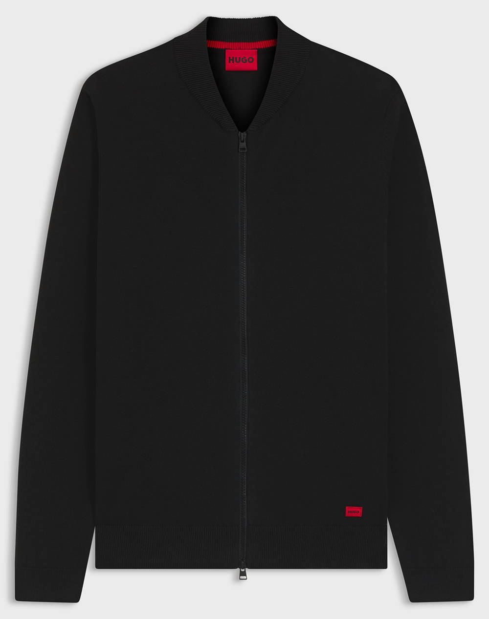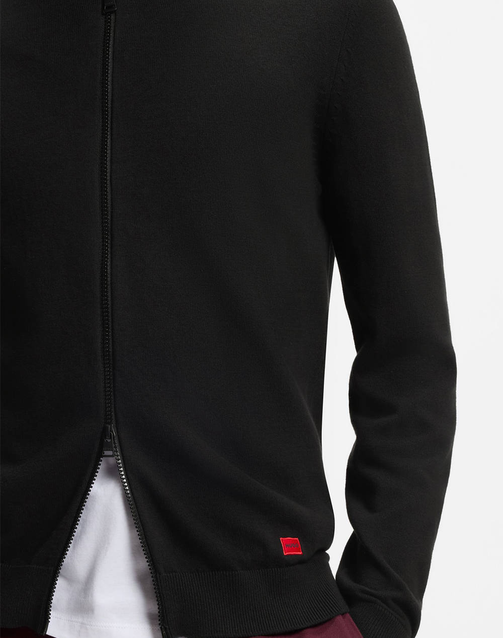 Men's knitted cardigan, regular fit, long sleeves, HUGO logo detail at the hem and zipper closure. (Composition: 100% Cotton)