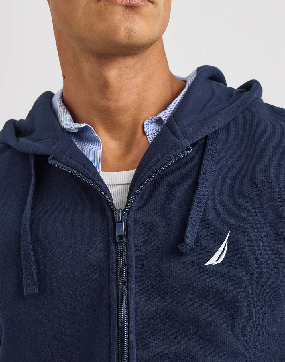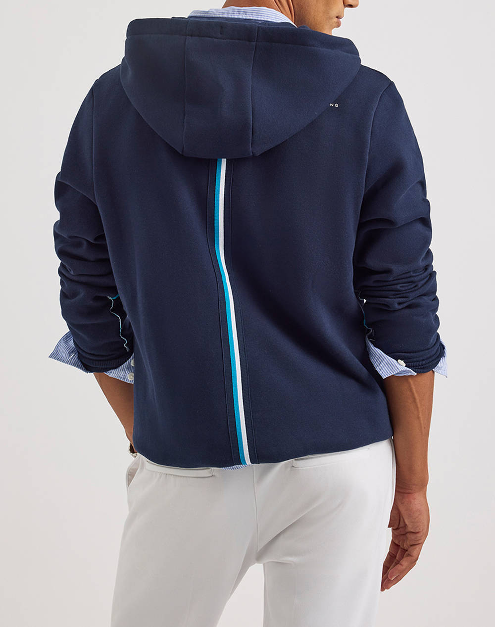 Men's sweatshirt, regular fit, with adjustable hood, contrasting stripes on the back and front zipper closure. (Composition: 80% Cotton, 20% Polyester)