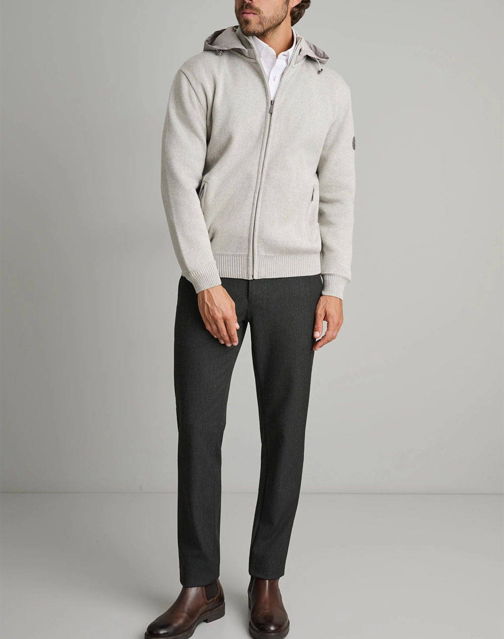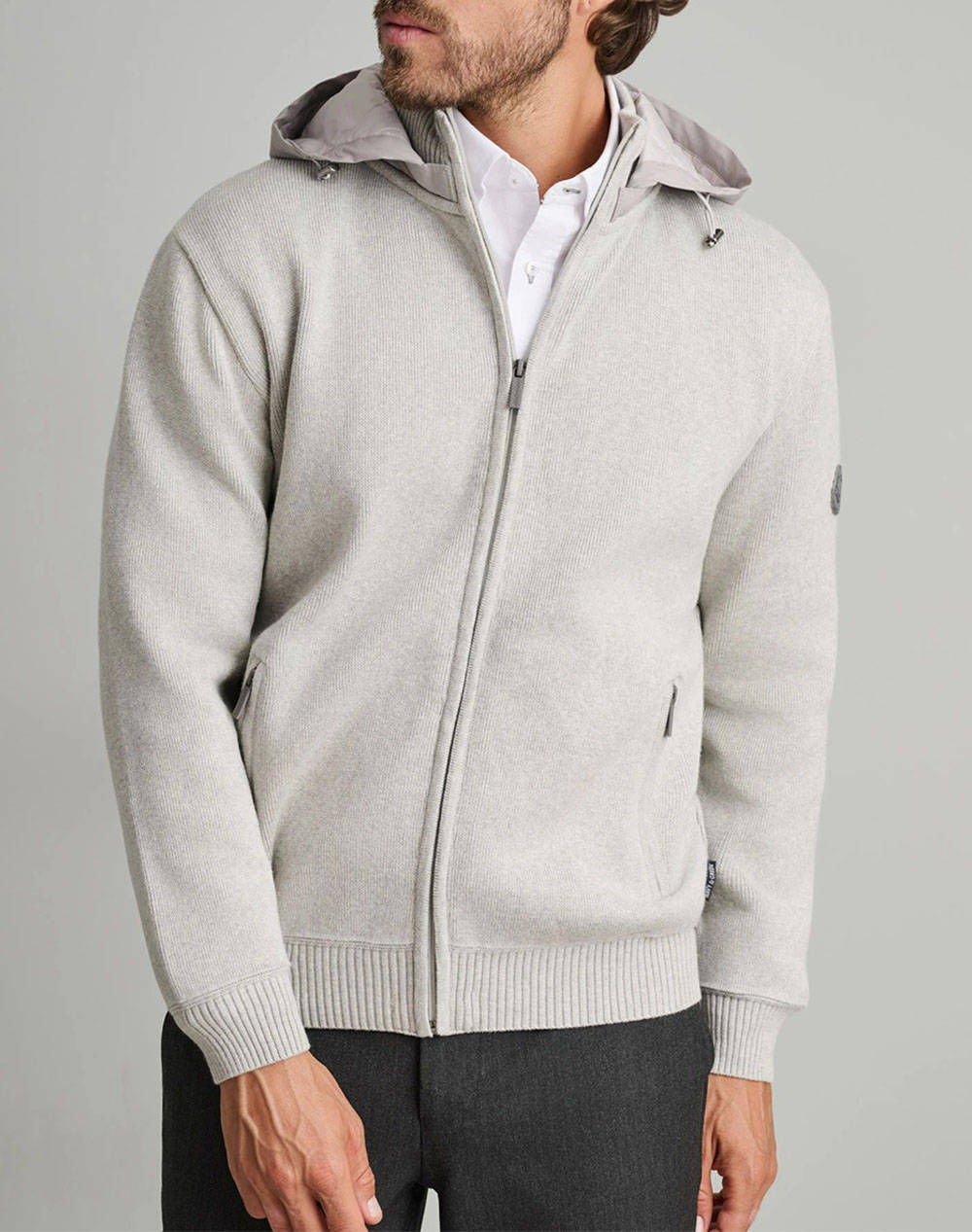 Men's knitted cardigan, regular fit, solid color, long sleeves, with hood, pockets and zipper closure. (Composition: 100% Cotton)