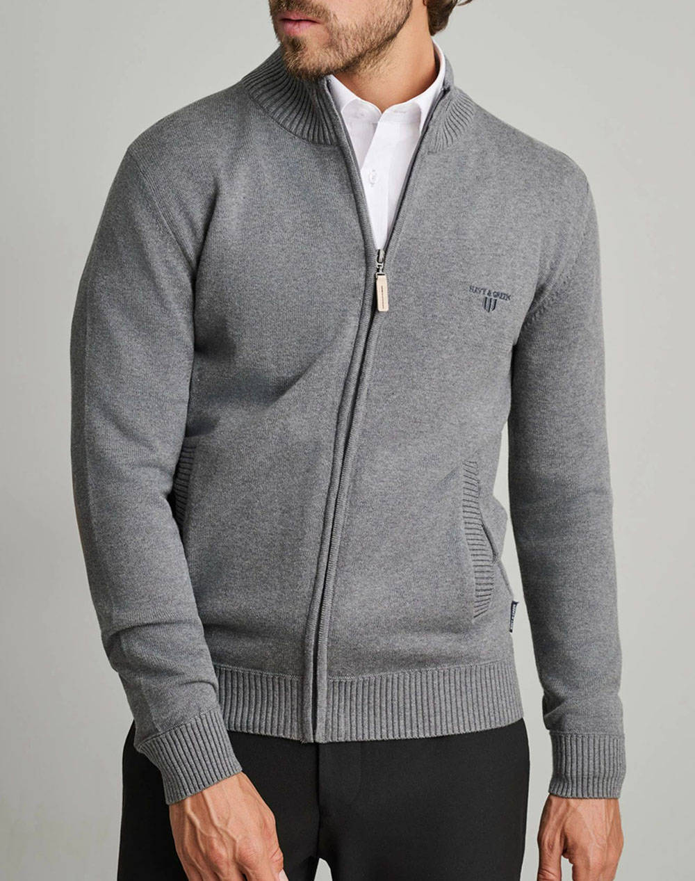 Men's knitted cotton cardigan.